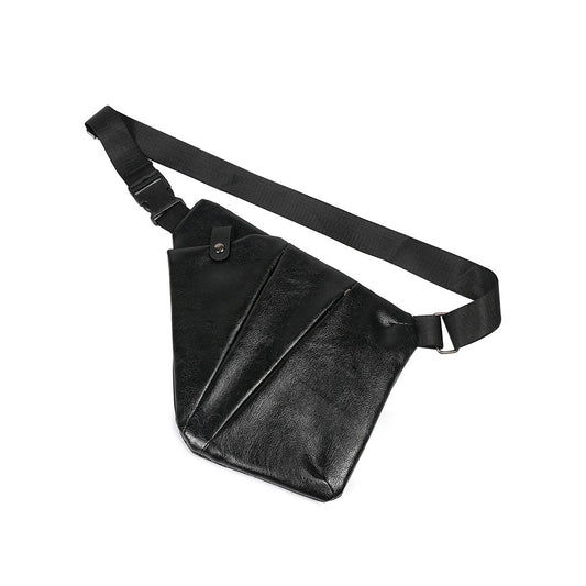 Anti-theft Sling Chest Pack for Men PU Leather Crossbody Shoulder Bag Black
