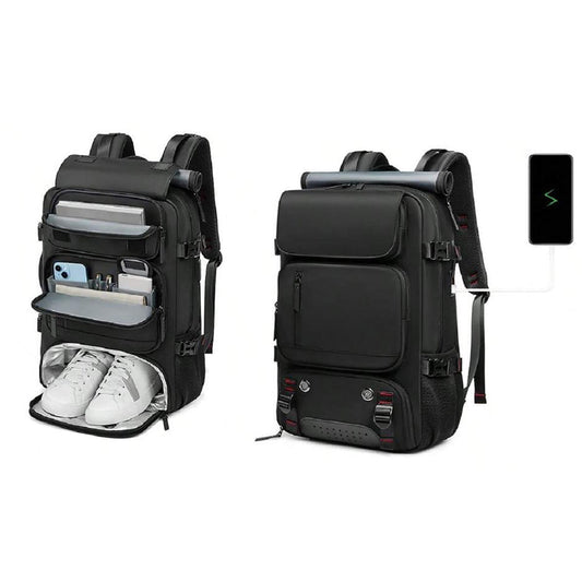 Large Travel Backpack Water Resistant Laptop Backpack Camping Rucksack With Separate Shoe Pocket Black