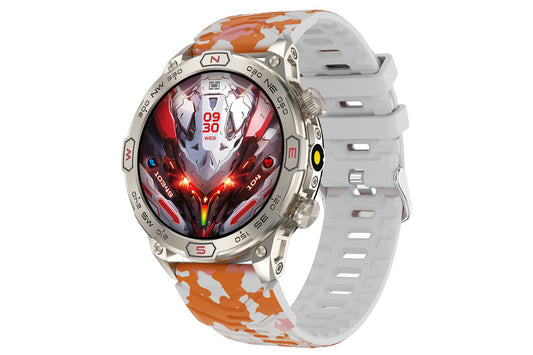 Smart Watch 1.43-Inch Fitness Watch with All Day Heart Rate Sleep Monitor Blood Oxygen Flashlight AI Voice Activity Tracker-Orange camouflage