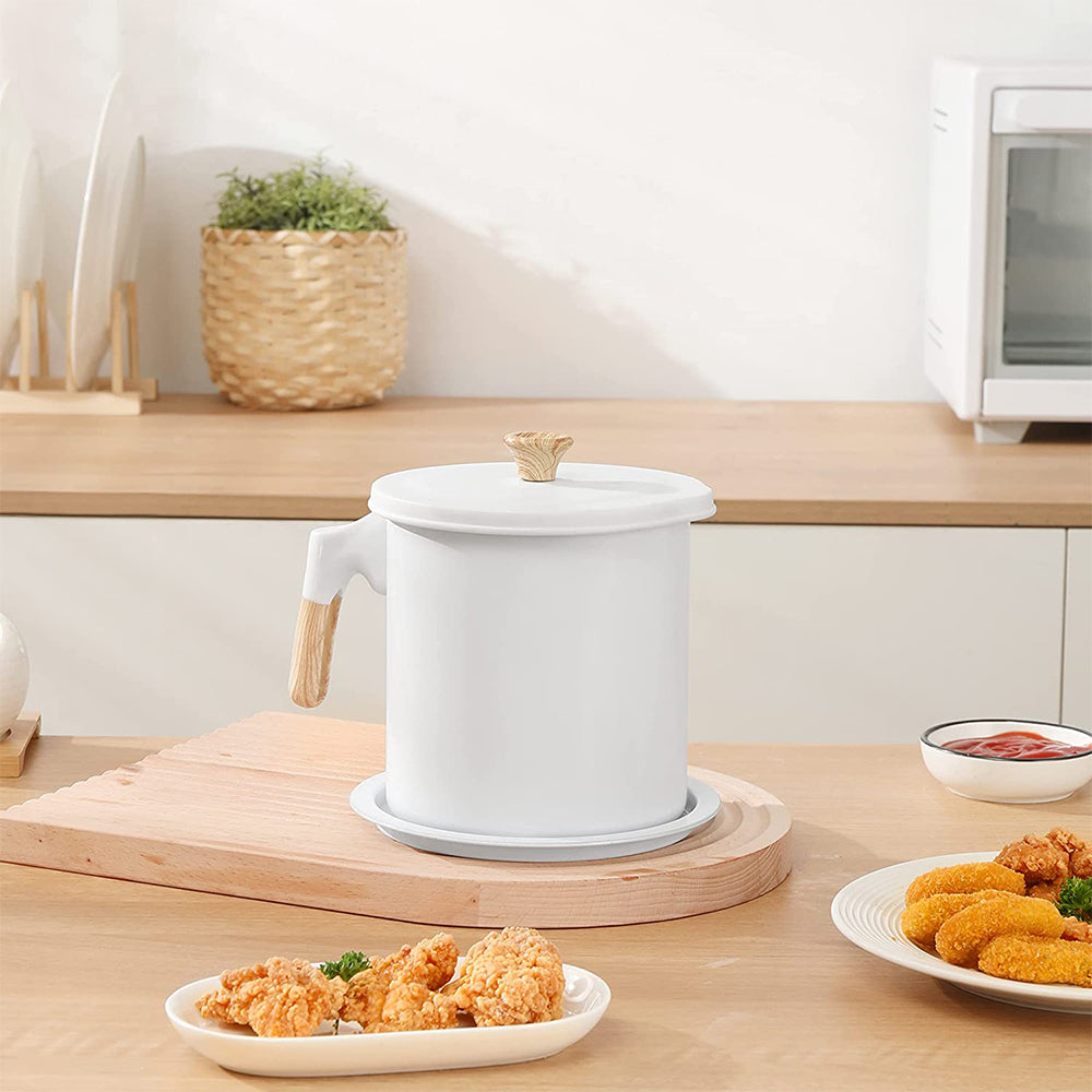 1.4L Oil Filter Pot Grease Strainer Container with Tray White
