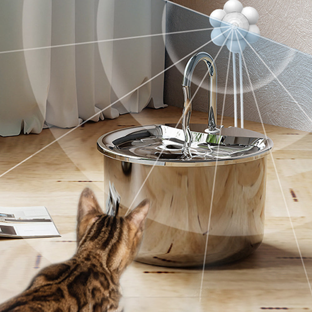 1.8L Electric Pet Water Dispenser Intelligent Sensor Automatic Stainless Steel Cat Dog Fountain