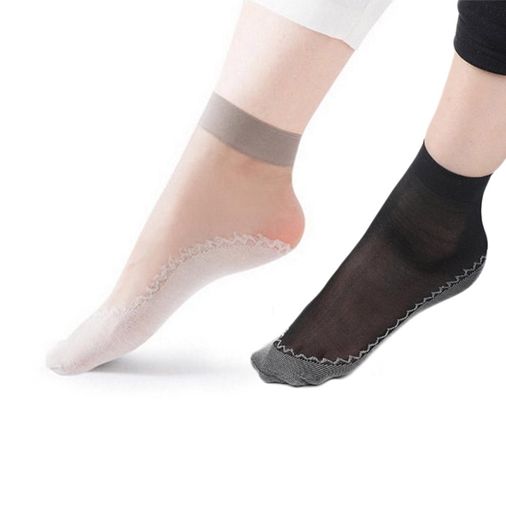 10 Pairs of Women Silky Sole Socks for Daily-Black + Grey