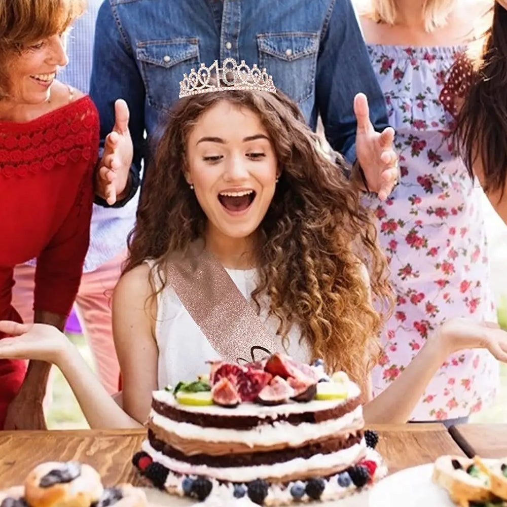 10 PCs Birthday Decoration Set Birthday Gift Tiara Crown and Sash for Girls Women-18th Birthday Decoration Set