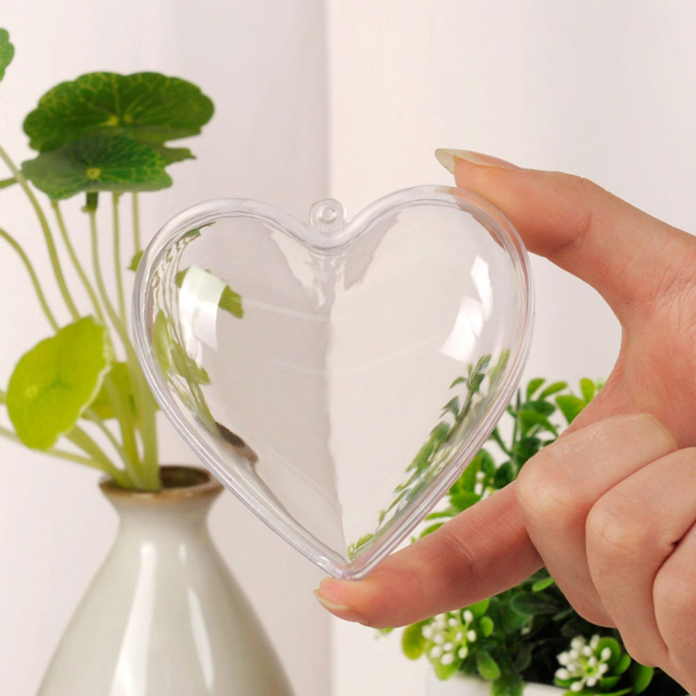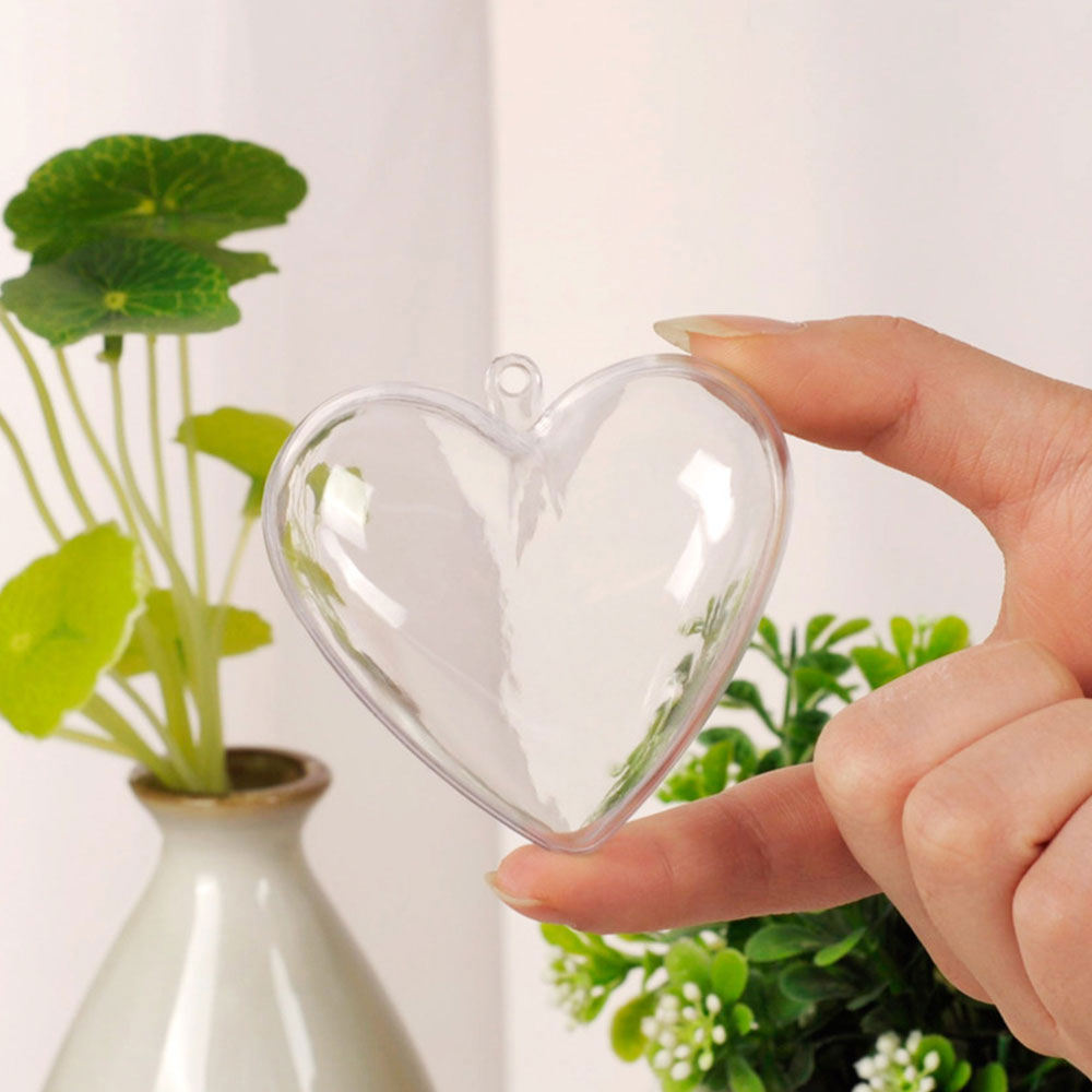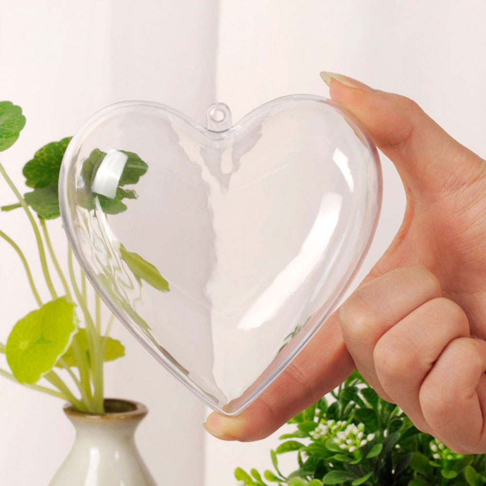10 Pcs Clear Heart-Shaped Christmas Plastic Baubles DIY Xmas Tree Fillable Decor Ornaments