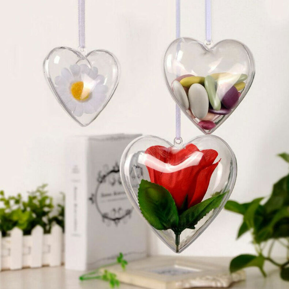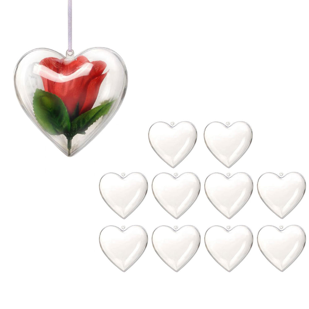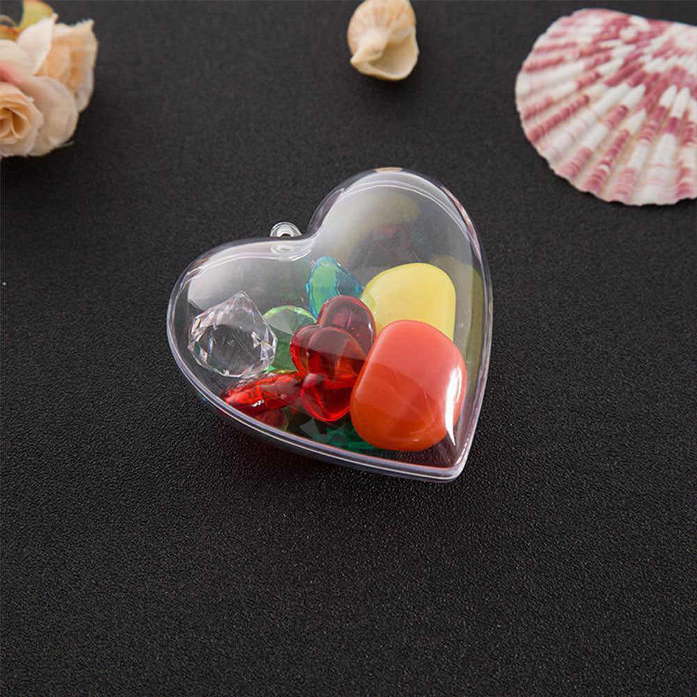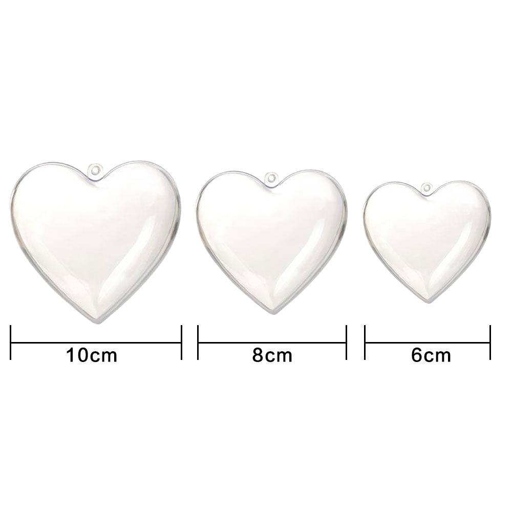10 Pcs Clear Heart-Shaped Christmas Plastic Baubles DIY Xmas Tree Fillable Decor Ornaments