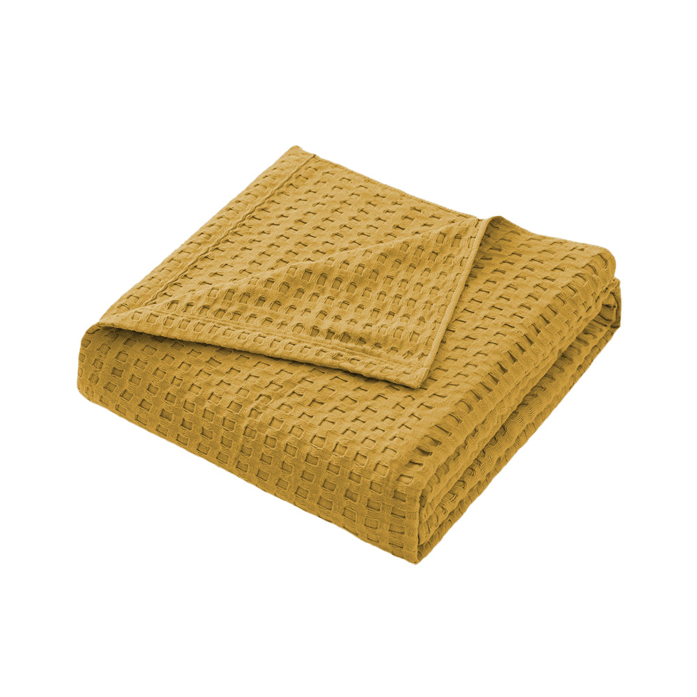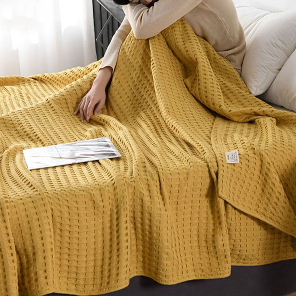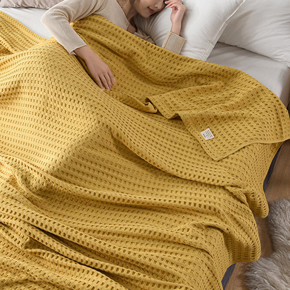 100% Cotton Blanket Cozy Waffle Weave Blanket Soft Quilt Yellow