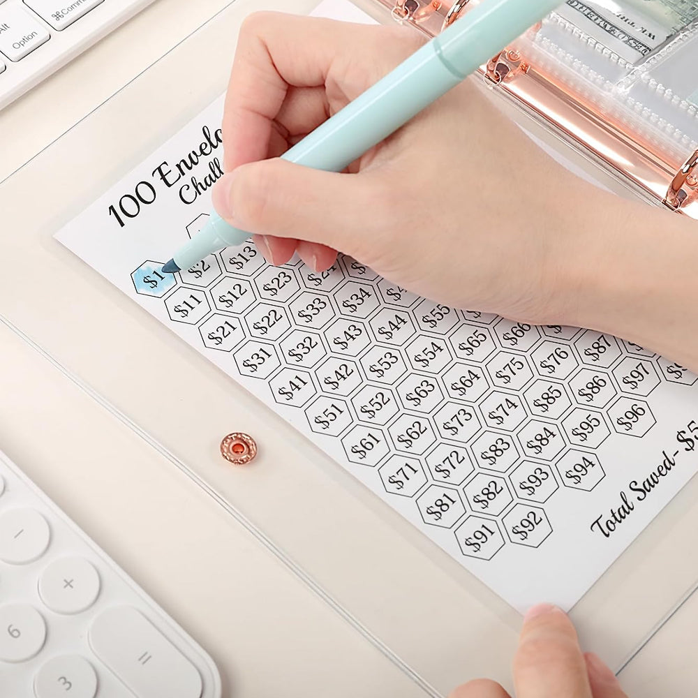 - Labeled from 1 to 100, a simple and fun 100-day challenge to save 5050 dollars.