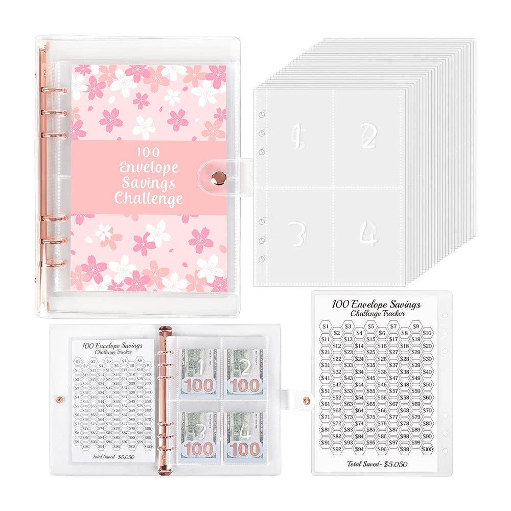 100 Envelopes Money Saving Challenge Binder Budget Planner Book Pink