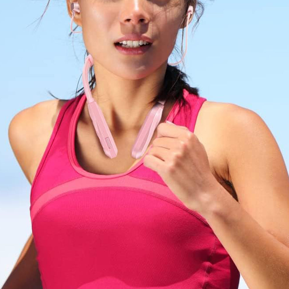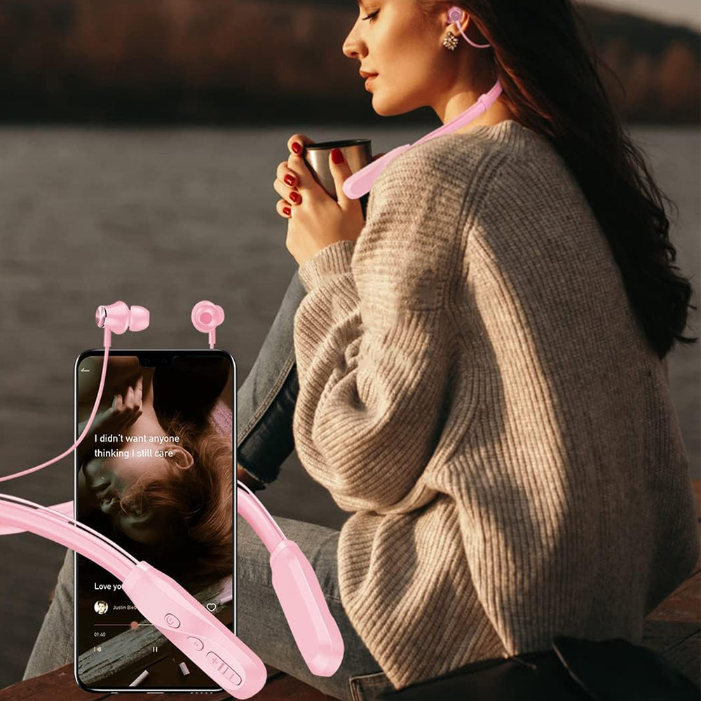 100 Hour Neckband Bluetooth Headphones Noise Cancelling English Version Pink