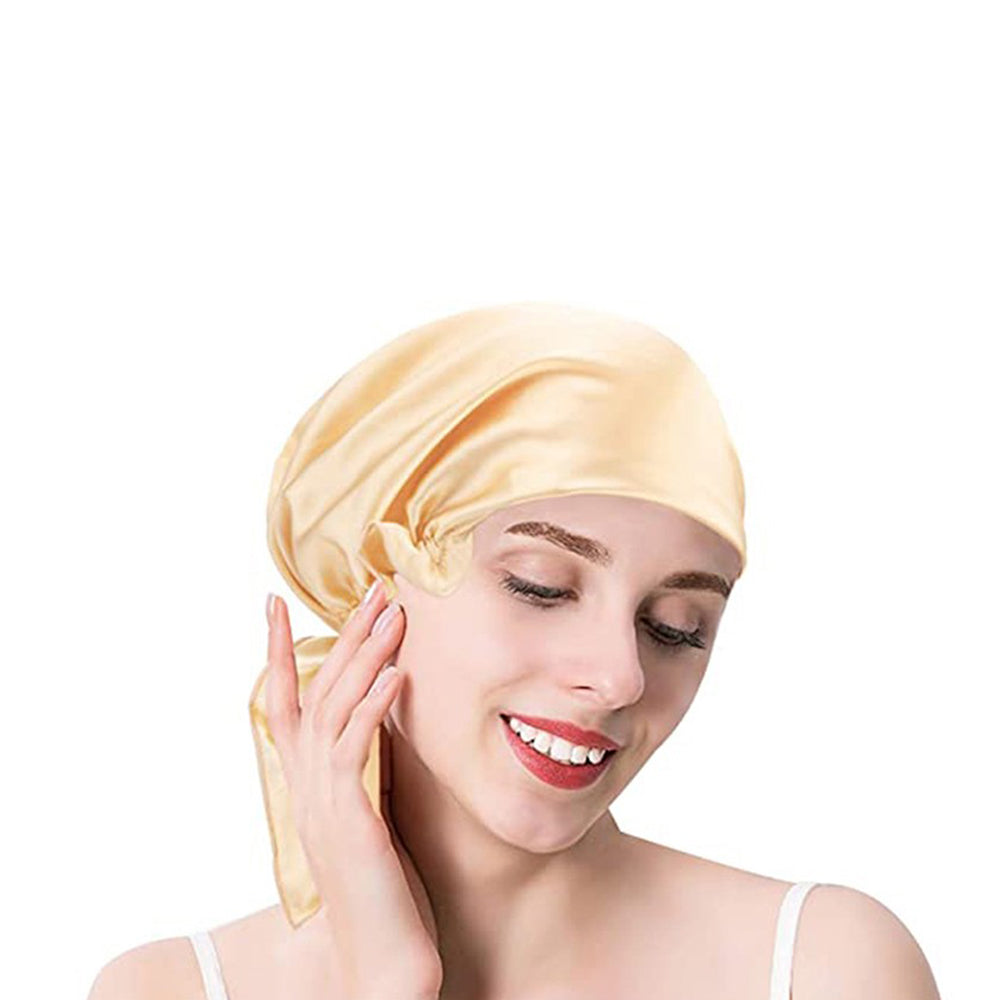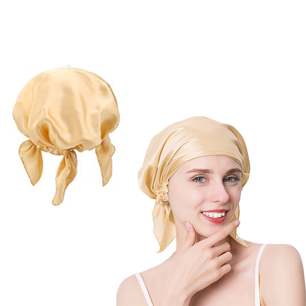 100% Mulberry Silk Night Cap Soft Sleeping Cap Hair Wrap Bonnet for Hair Care Champagne