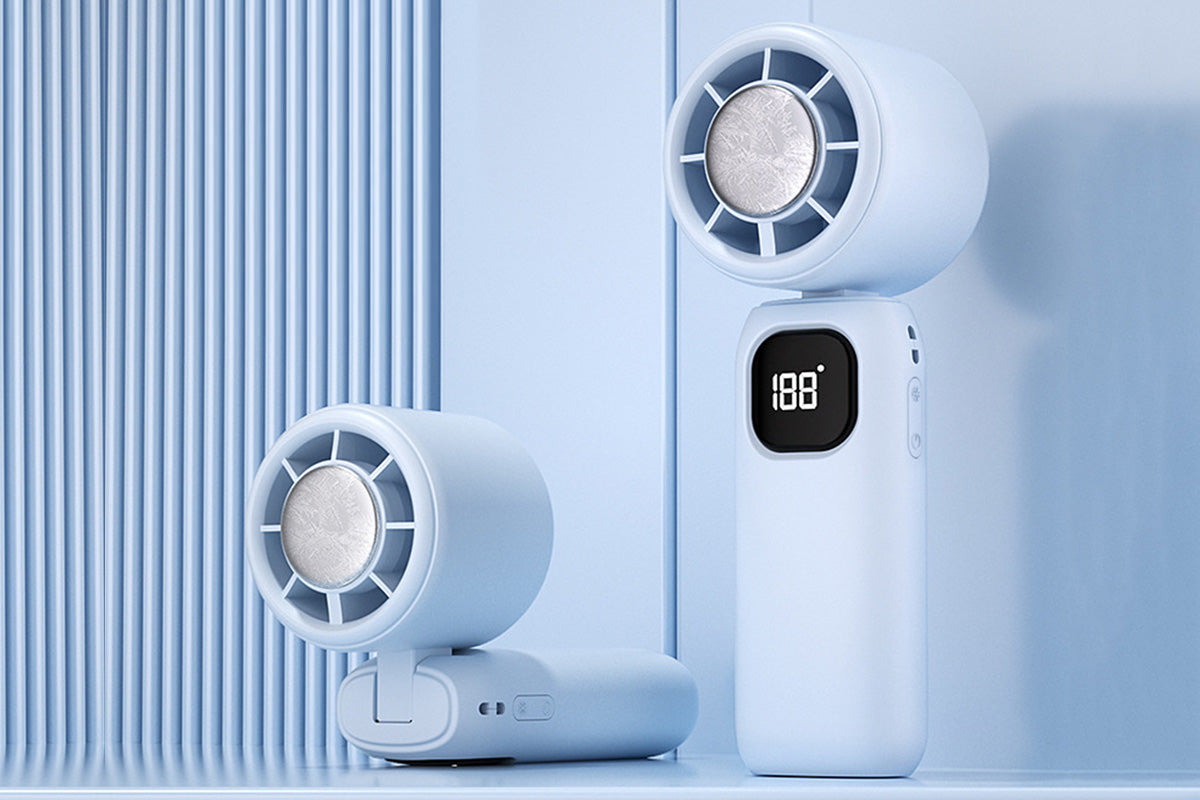100 Speeds Digital Display Cooling Fan USB Fan with Lanyard and Phone Holder Base-Blue
