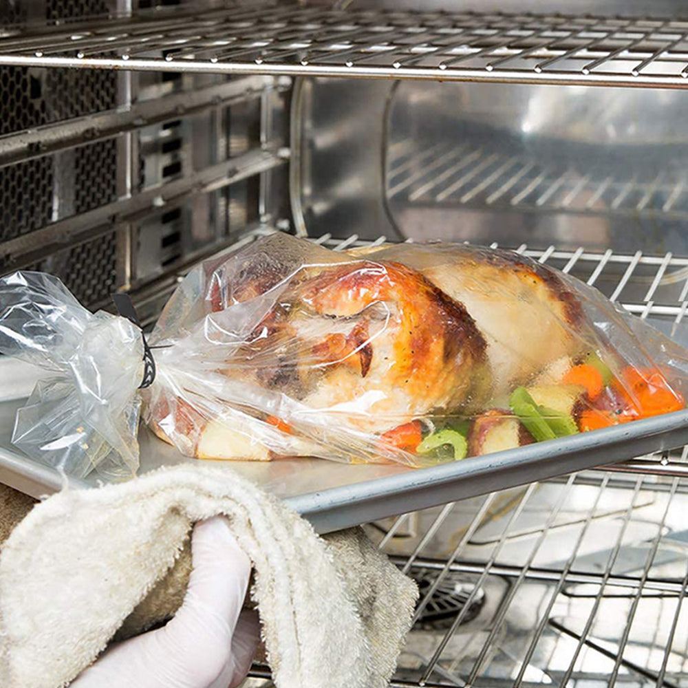 100Pcs Large Roasting Bags Kitchen Microwave Oven Chicken Meat Cooking with Cable Ties