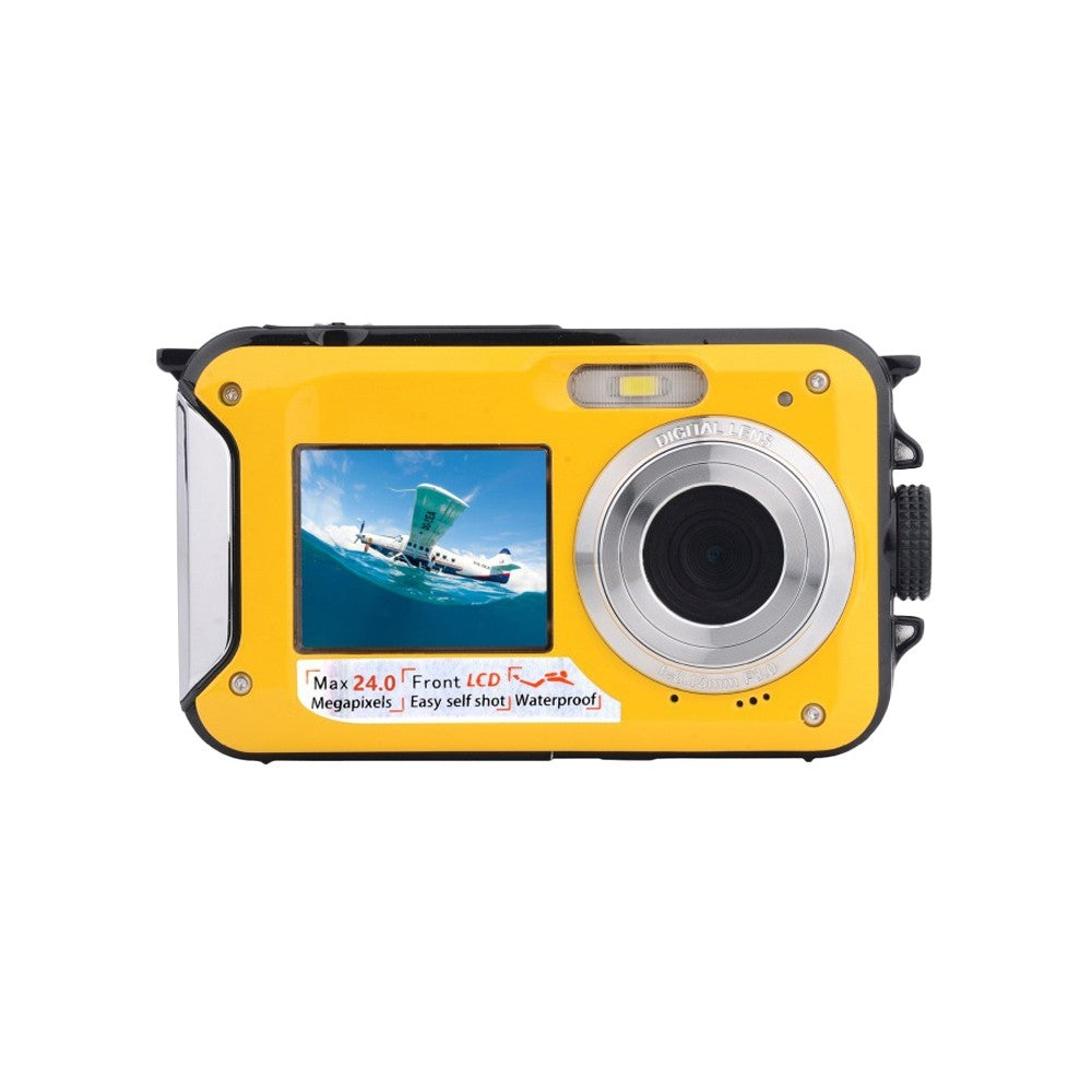 1080P Dual Screen Selfie Underwater Camera Water Resistant Digital Camera with 32GB Memory Card Yellow