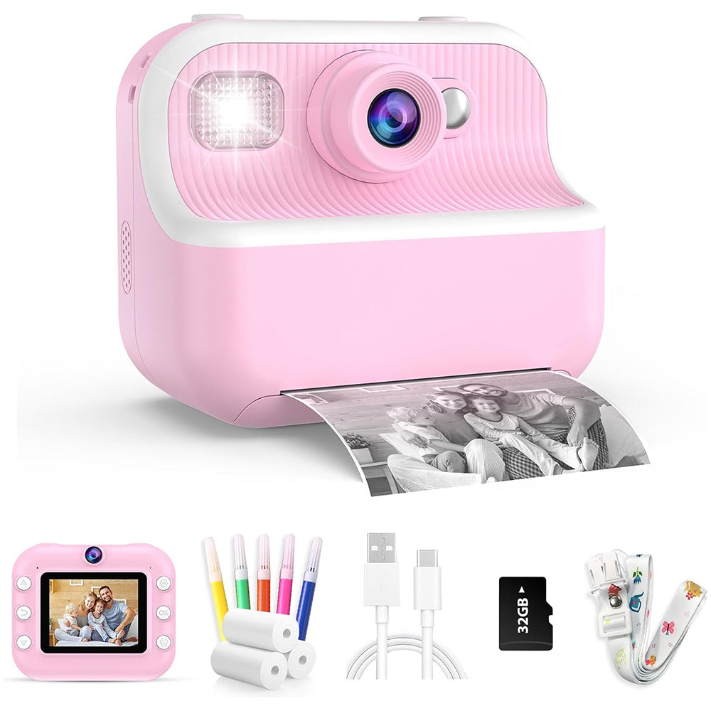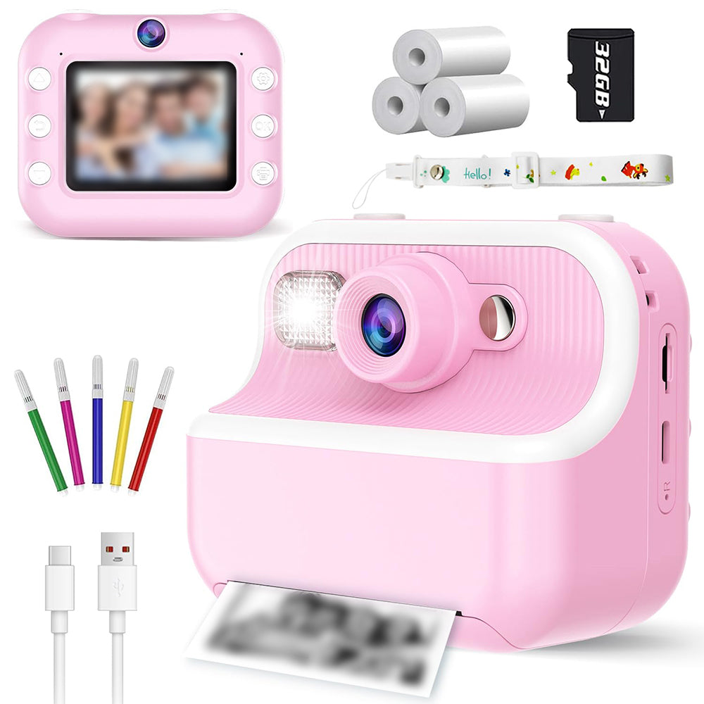 1080P Kids Instant Print Camera Dual Lens Digital Camera Christmas Birthday Presents Pink