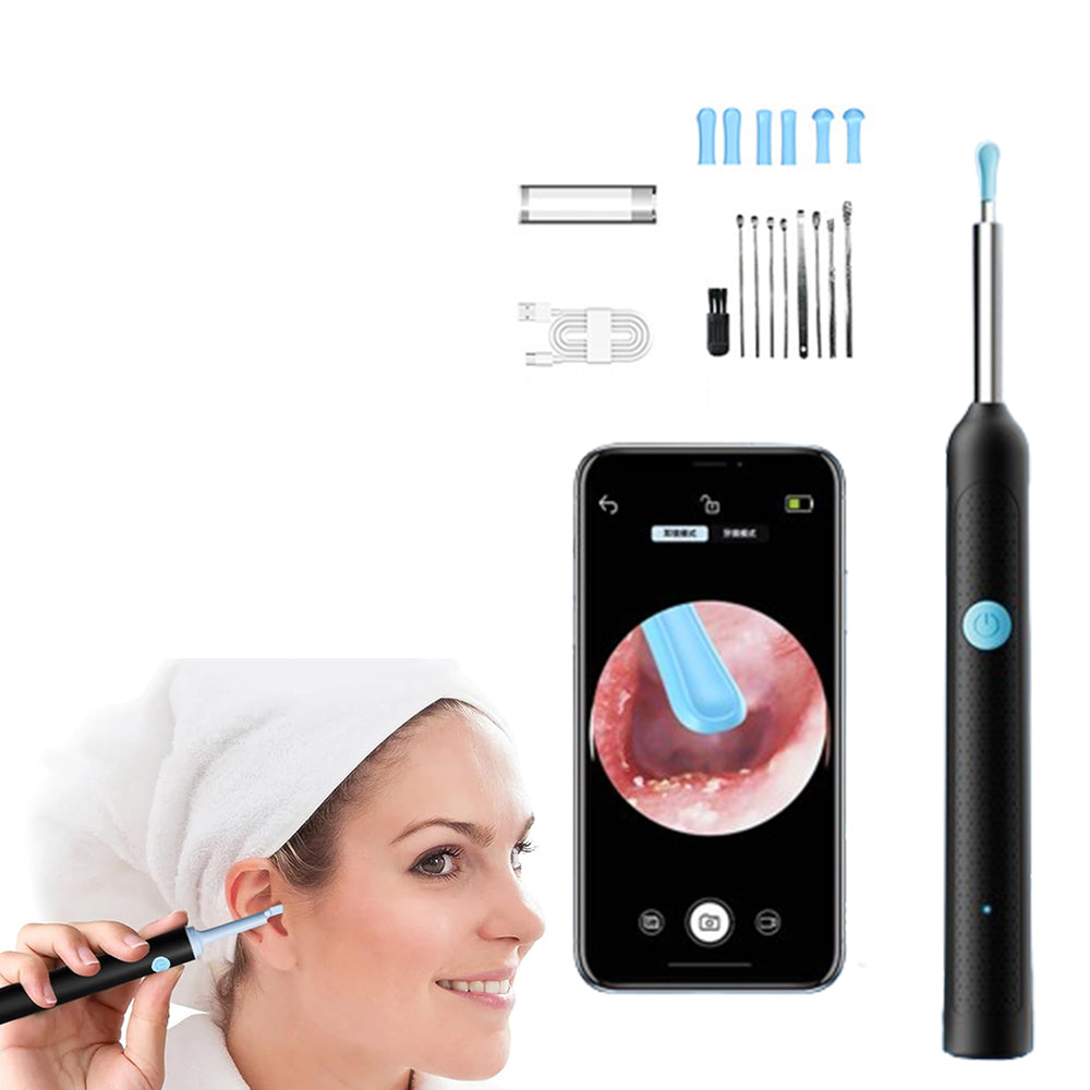 1080P WiFi Ear Wax Removal Otoscope Tool Kit 3.3mm Ear Cleaning Endoscope with 6 LED Light for iOS Android Smartphones Black