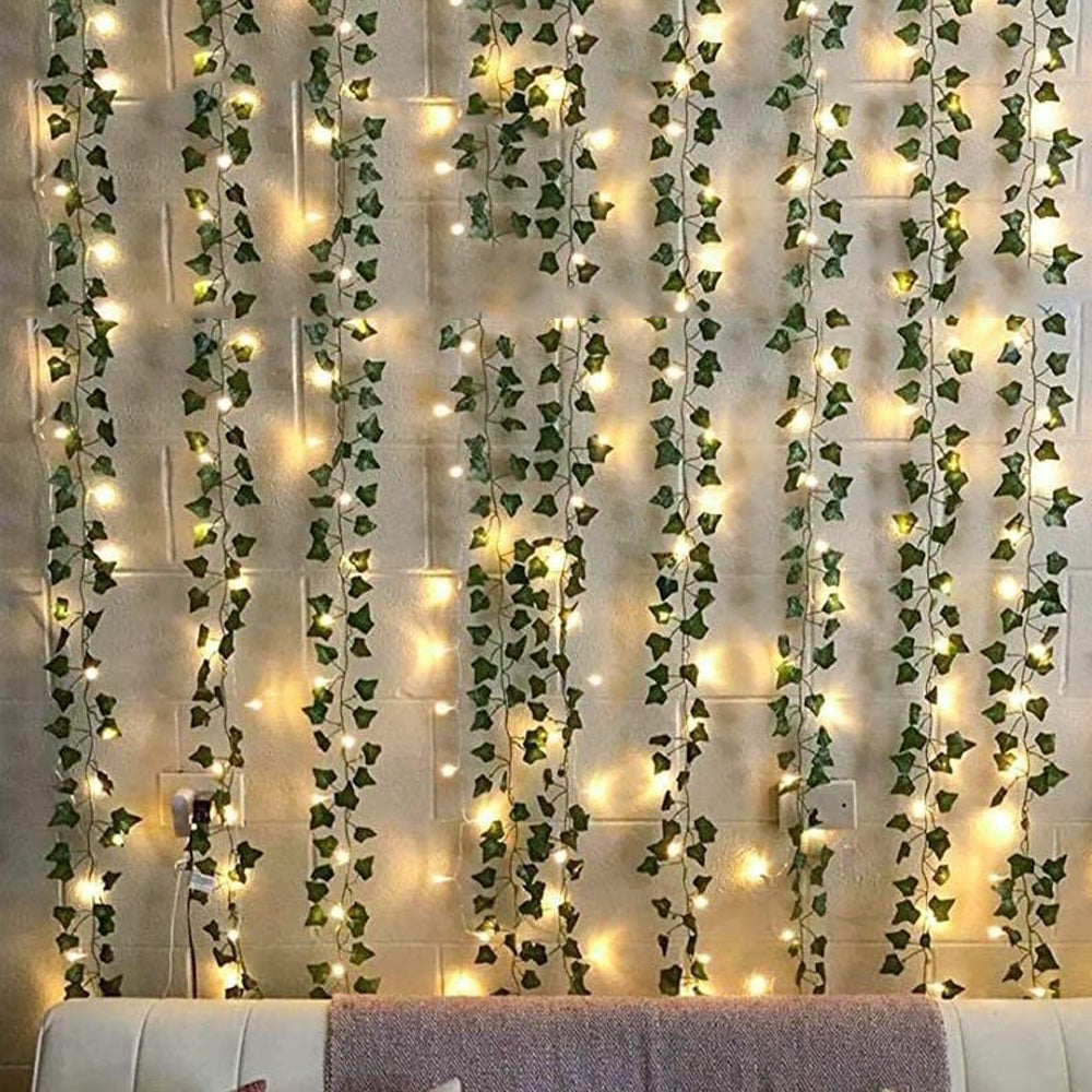 The fake ivy vines plants light are designed with green leaves and stems. It can be easily put on hung on walls, windows, doors, floors, trees, pianos and gardens, .makes your house and garden colorful and romantic