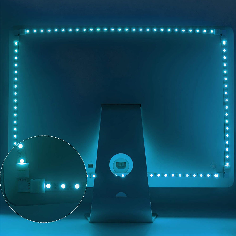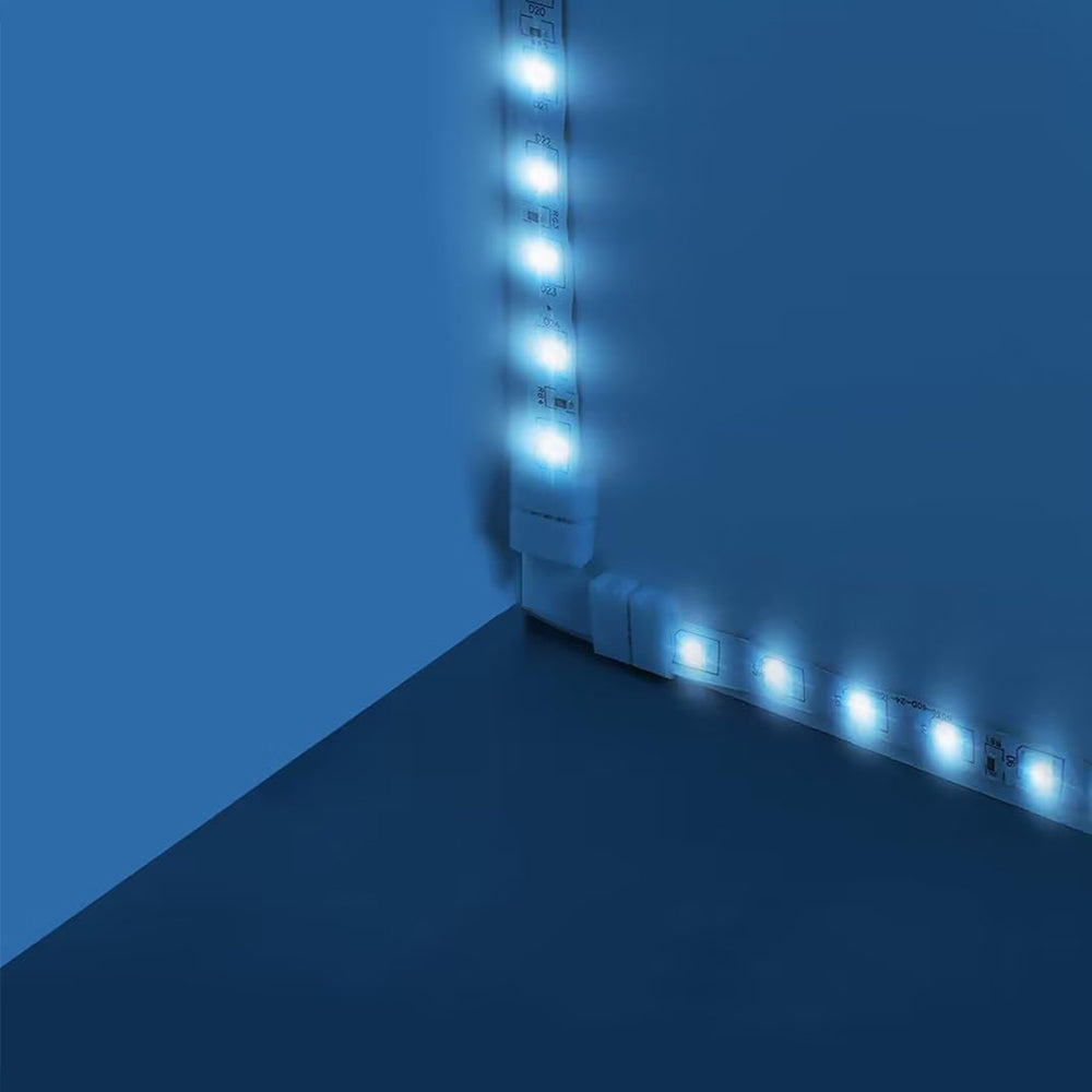 This LED strip connector kit comes with detachable L sheets and clips, perfect for both 90-degree corner connections and extensions along a straight line.