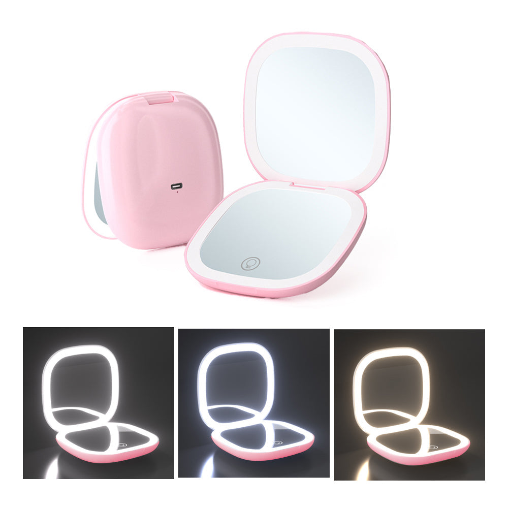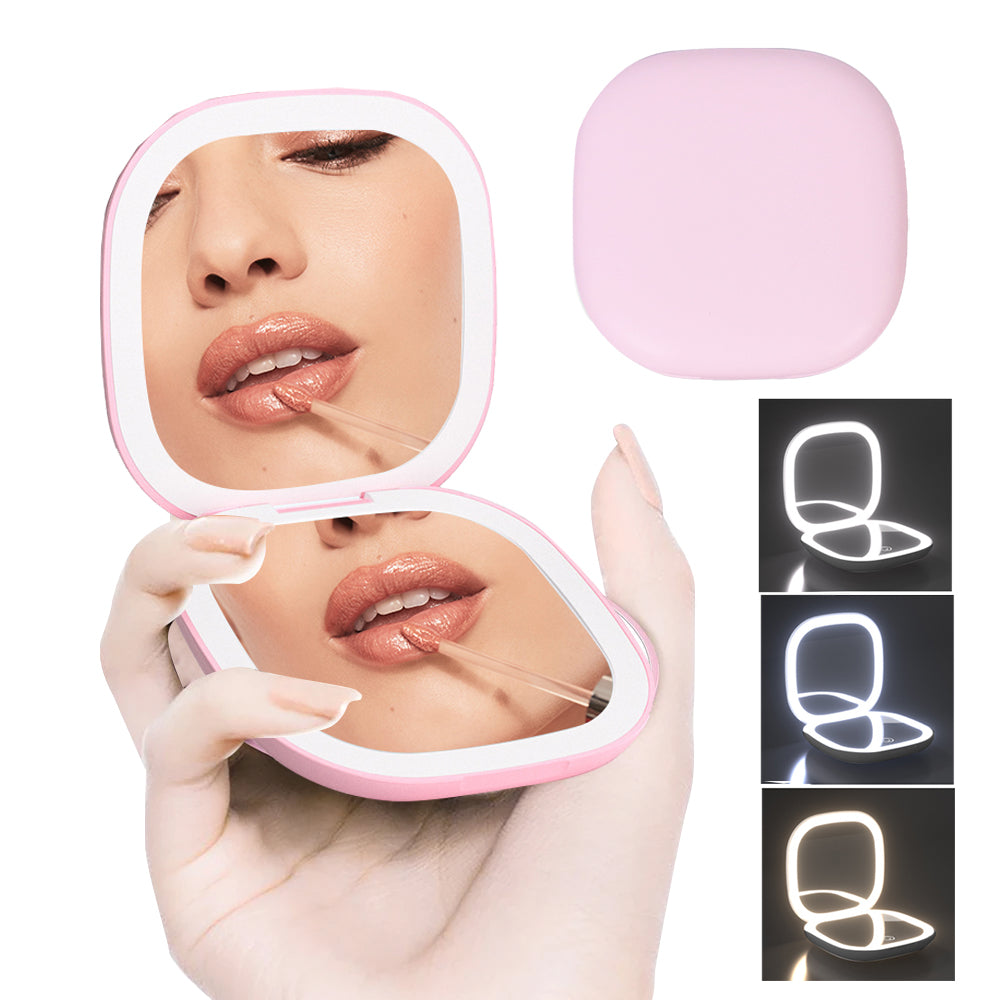 10X Magnifying Lighted Makeup Mirror Dimmable Double Sided Cosmetic Mirror Portable Pink