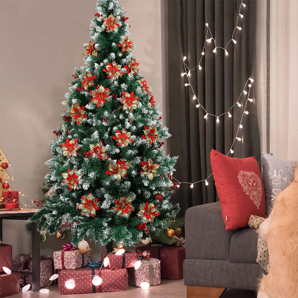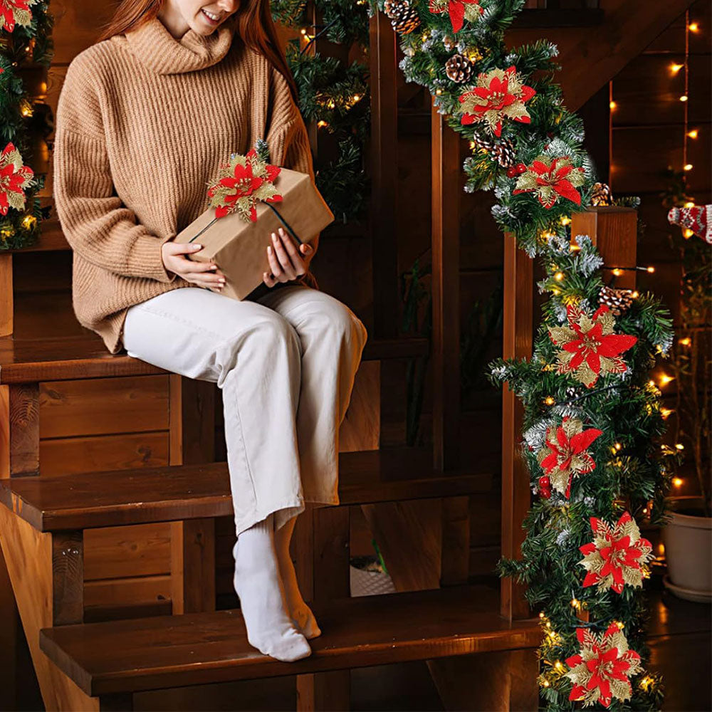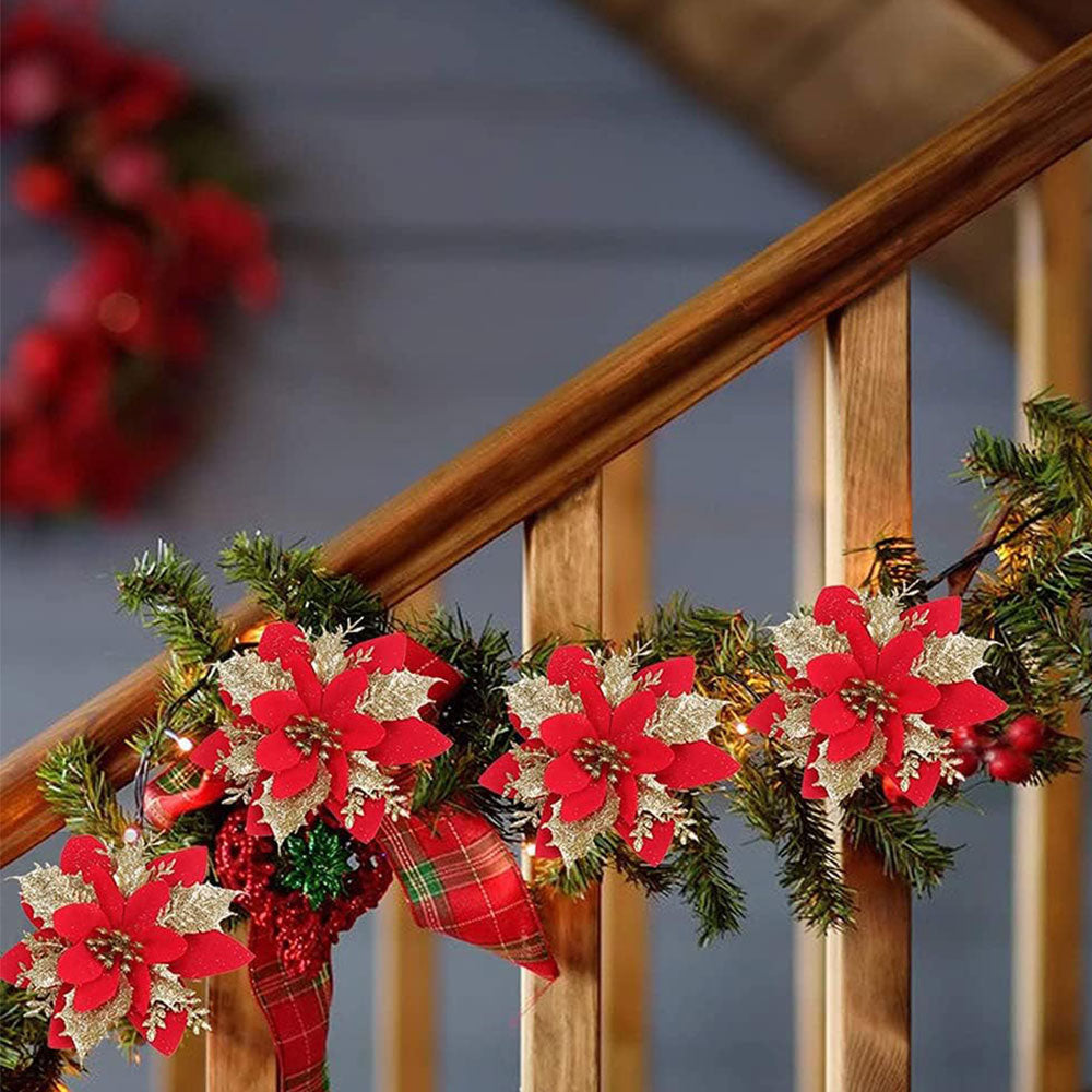 Fill in those larger bare spots on the tree with these glitter poinsettia flowers, it will make the Christmas tree look full and sparkling!
