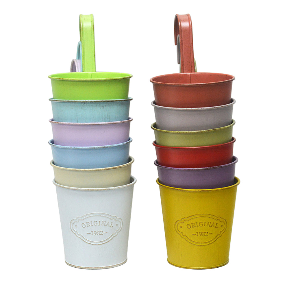 12Pcs Hanging Flower Pots Metal Planter Bucket Flowerpot with Detachable Hooks Home Decor