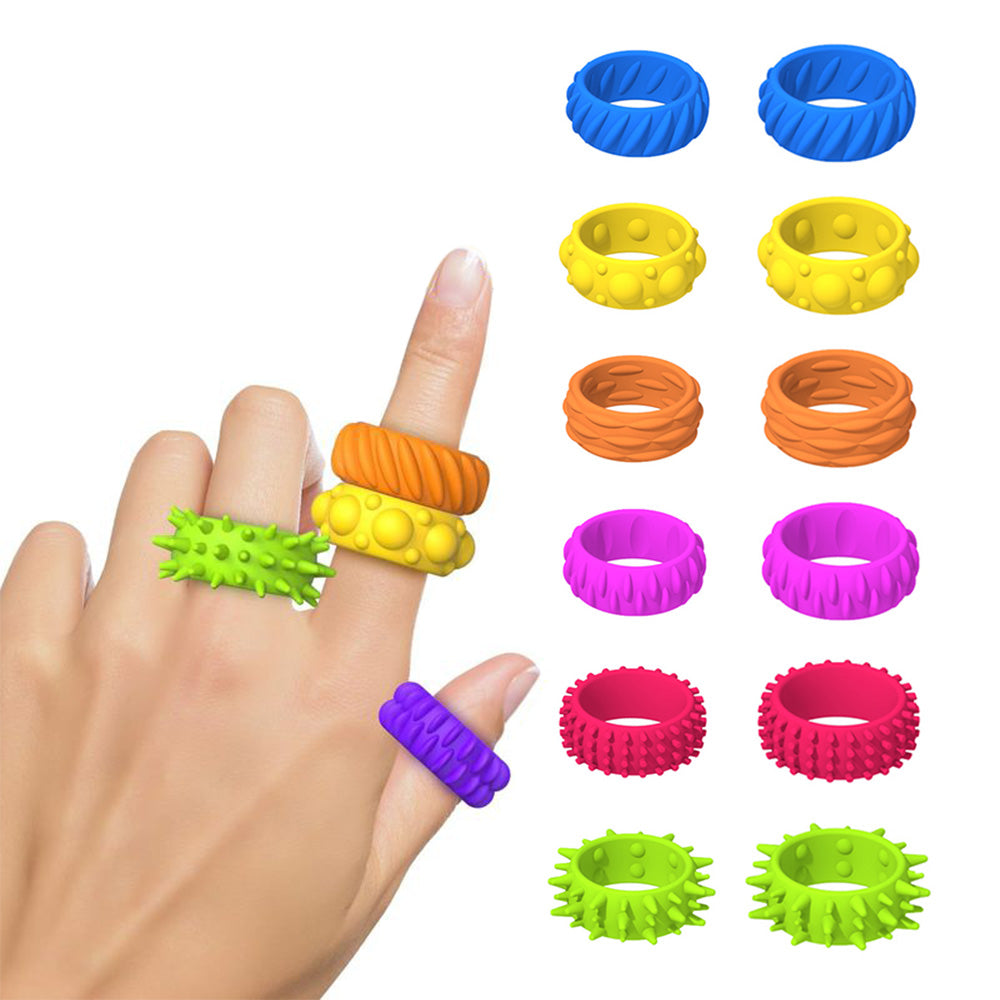 12Pcs Ring Sensory Toys for Textured Soft Finger Spinner Rings