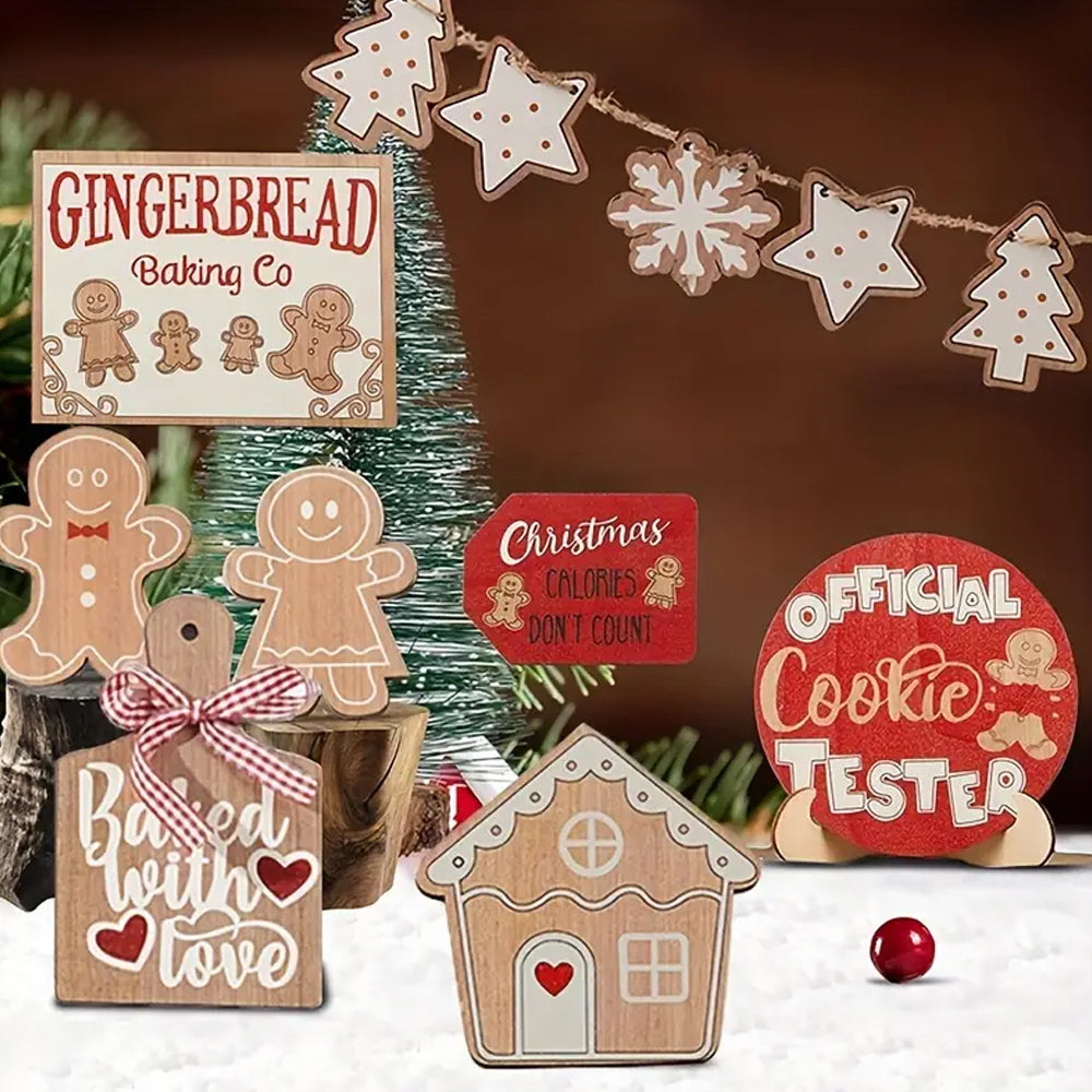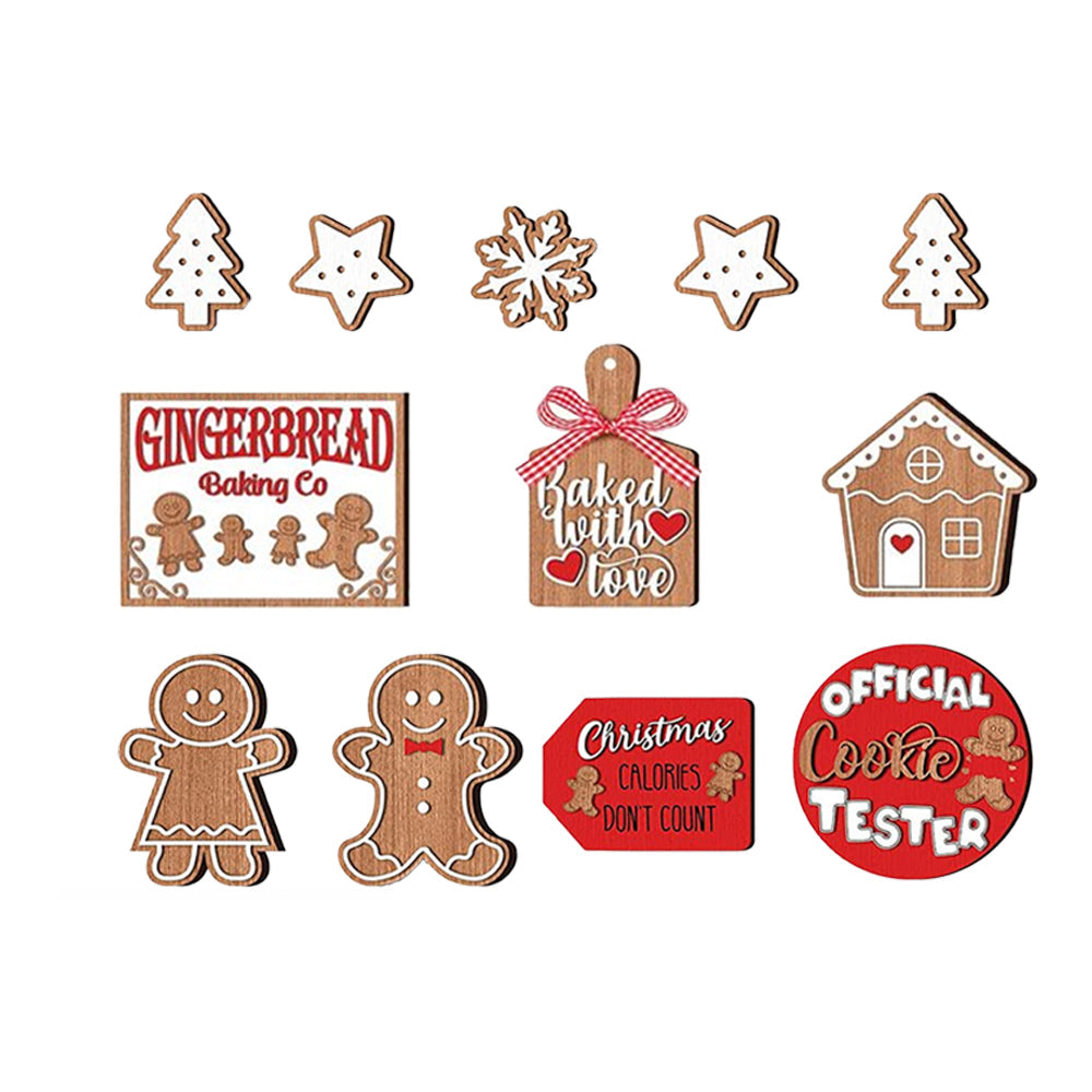 12Pcs Wooden Gingerbread Man Ornaments Christmas Tree Hanging Pendants Xmas Party Decor
