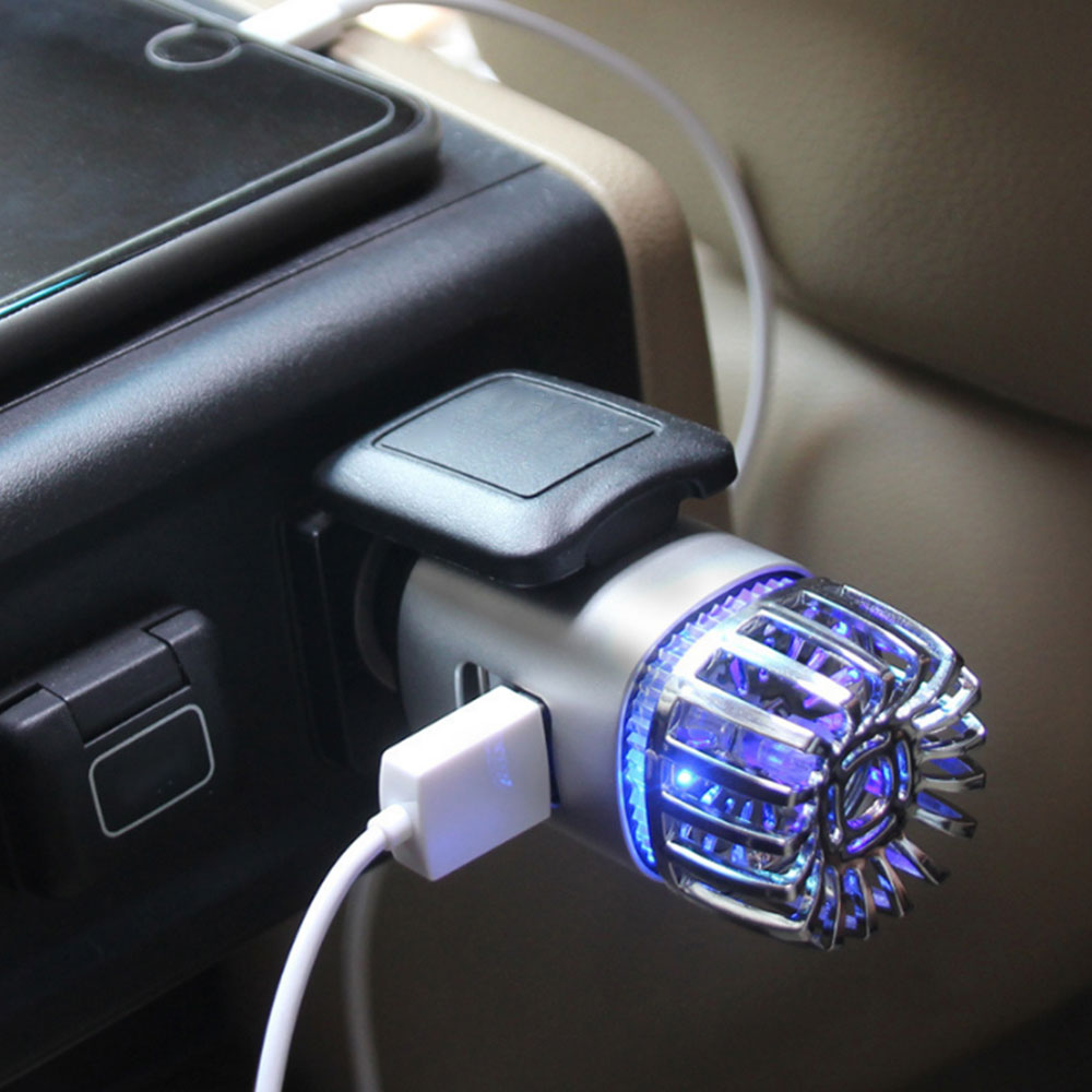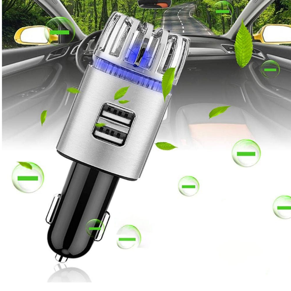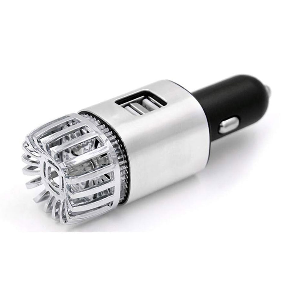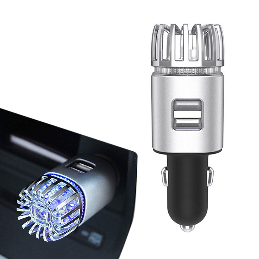 12V Car Air Purifier Car Air Freshener with Dual USB Charger Port Silver