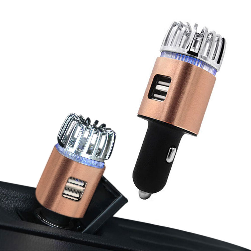 12V Car Air Purifier Car Air Freshener with Dual USB Charger Port Bronze