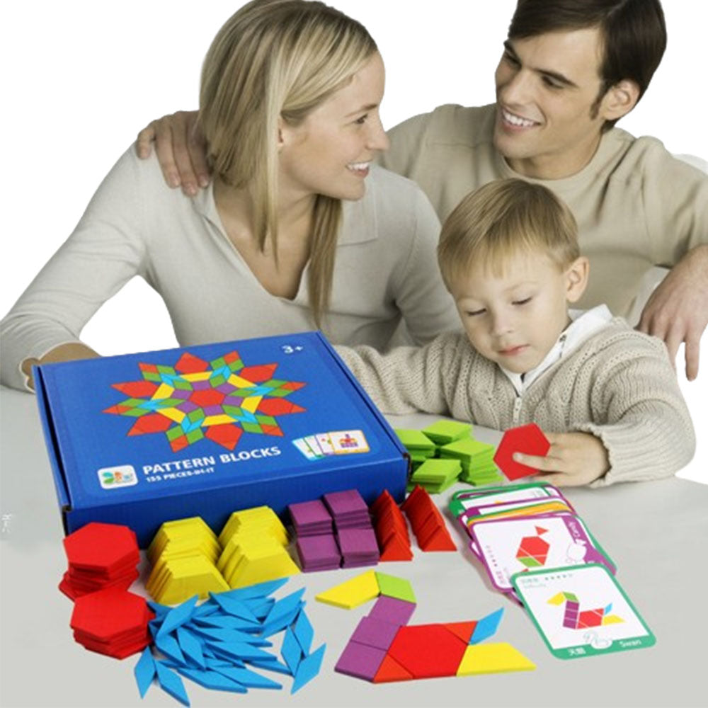 155Pcs Set Geometric Blocks Innovative Fun Early Educational Wooden Puzzle Set for Children