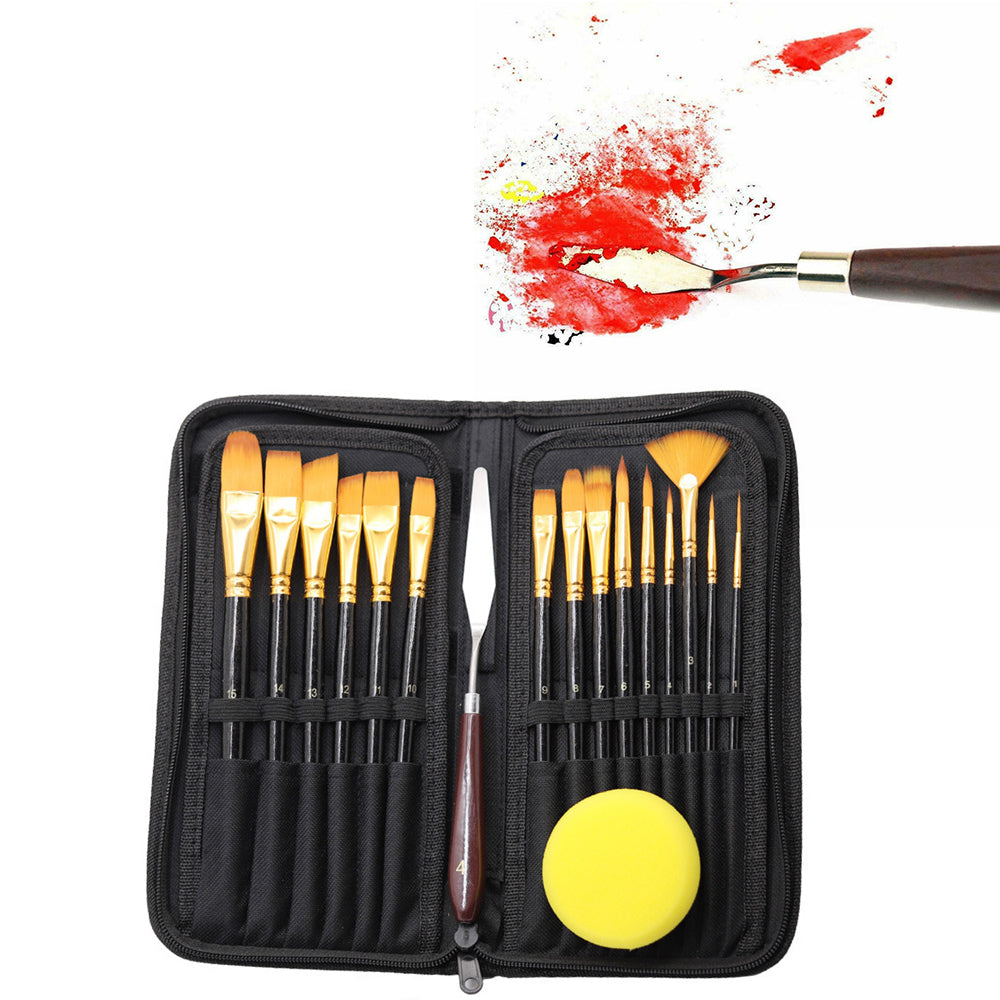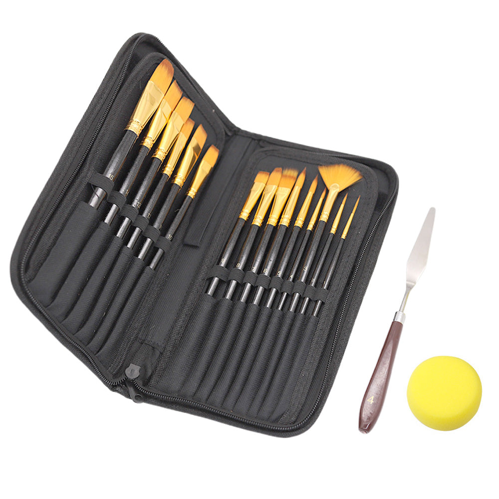 15Pcs Set Artist Paint Brushes with Sponge Brush for Watercolour Oil Painting Black