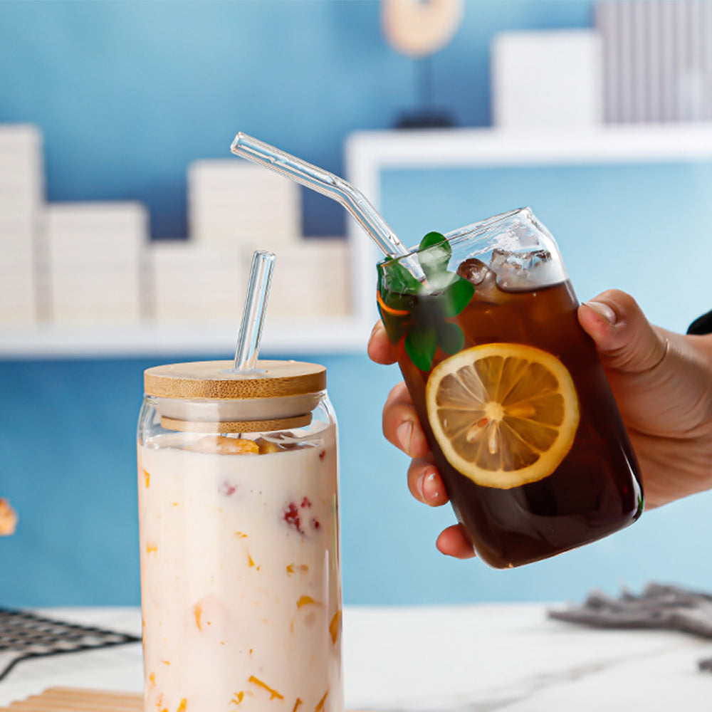 Each cup comes with a matching bamboo lid to prevent it from leaks and spills and a glass straw for easy drinking, and with a glass straws drinking reusable, makes you get the best drinking experience