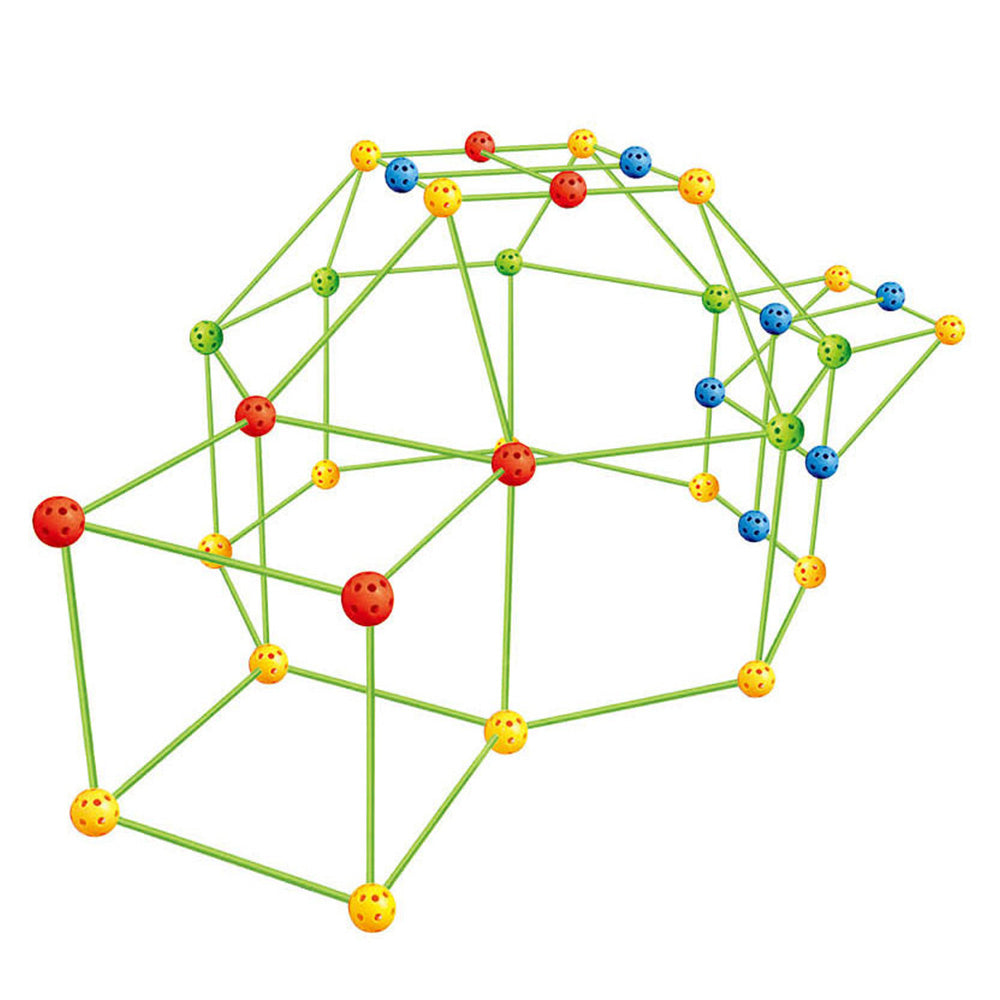 - The kids just attach the poles to the kid-friendly connector balls to create any fort they imagine, like the castles, tunnels, play tent, rocket, tower.
