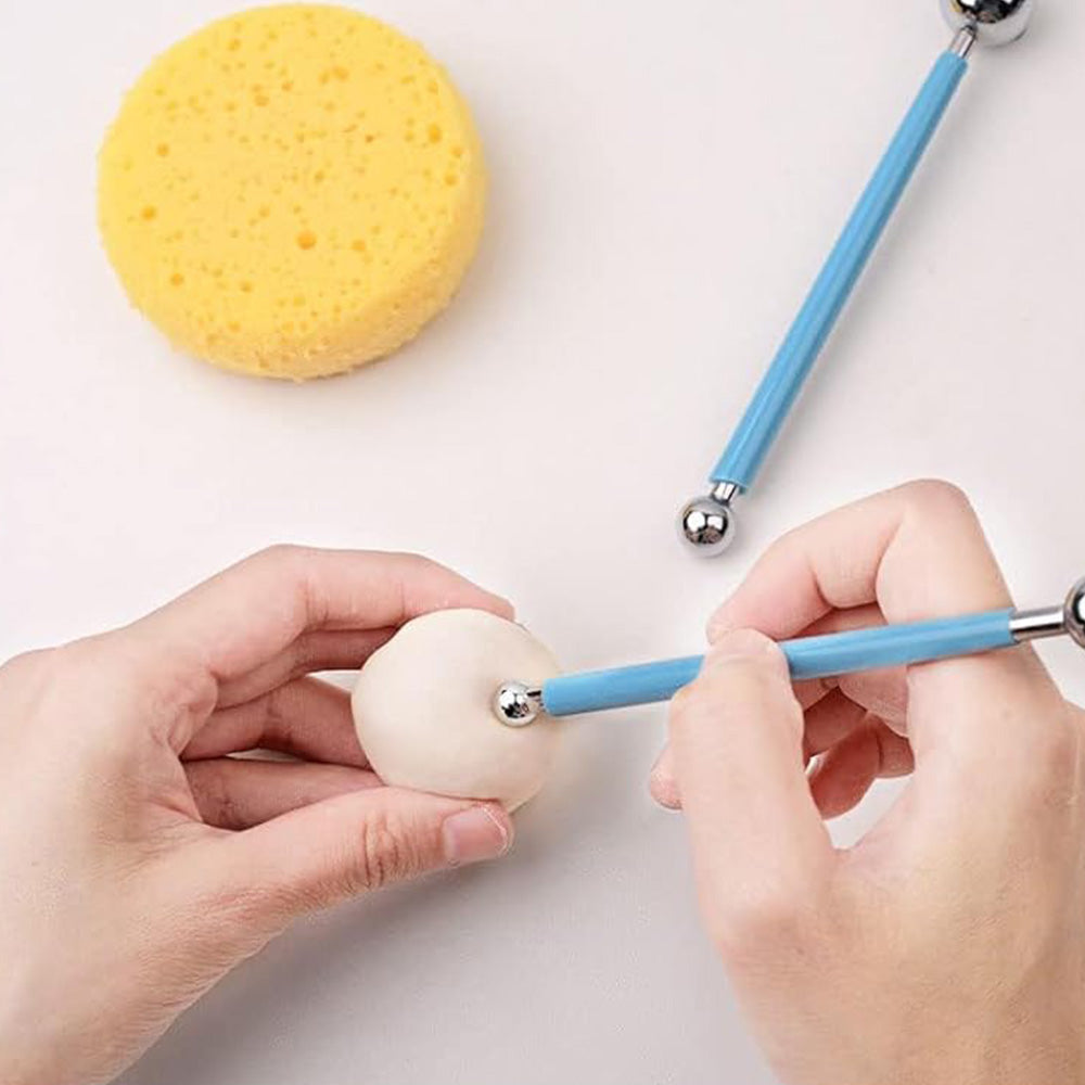 - The set includes 1x 7 needles for 1 piece, 1x detail needle, 1x mud cutter, 1x wooden scraper, 1x stainless steel cutting sheet, 1x wooden cutting knife, 1x clay art flat wire knife, 1x large head clay repair knife, 1x sponge tool, 1x large cutting knife, 2x clay pellet sticks, 6x clay sculpting knives, 1x tool bag.