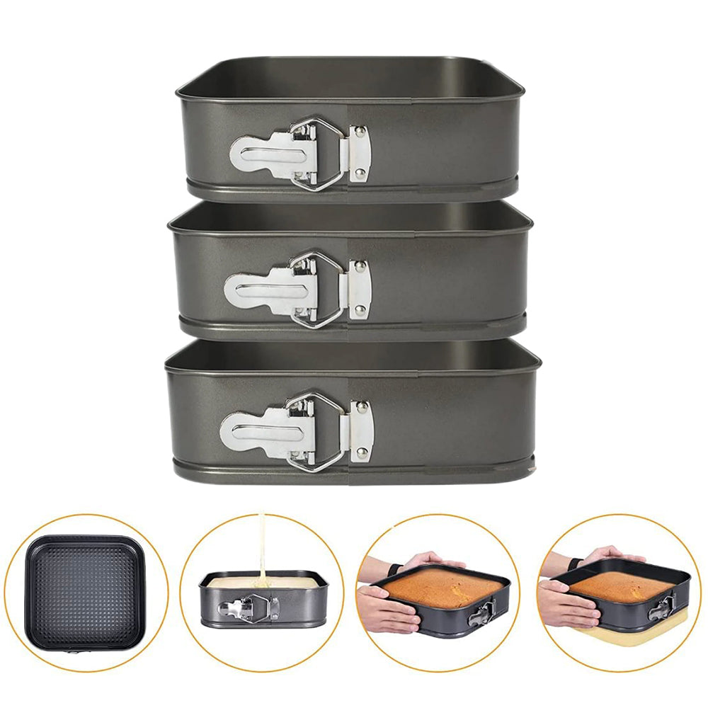 - Contains 3 square springform cake pans of different sizes, can bake cheesecakes, pizzas, quiches, ice-cream cakes, lasagnas, and much more.