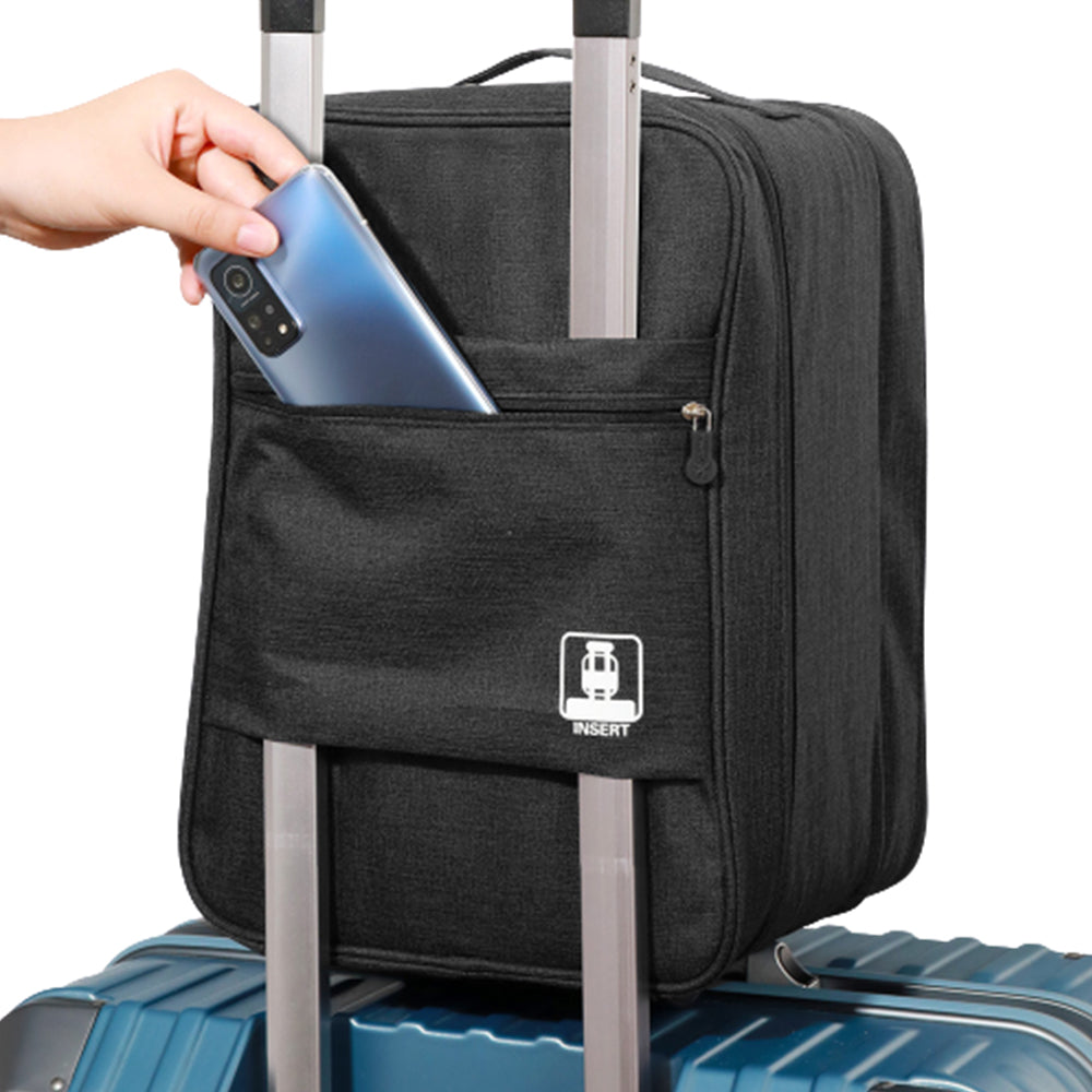 Slide your shoe pouch into your luggage trolley handle for easy transport