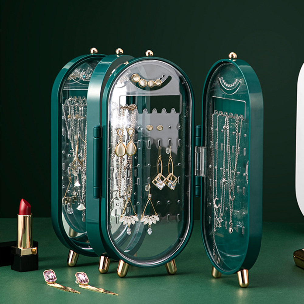 1X Jewellery Box Necklace Storage Organizer Display Earring Holder Stand Green