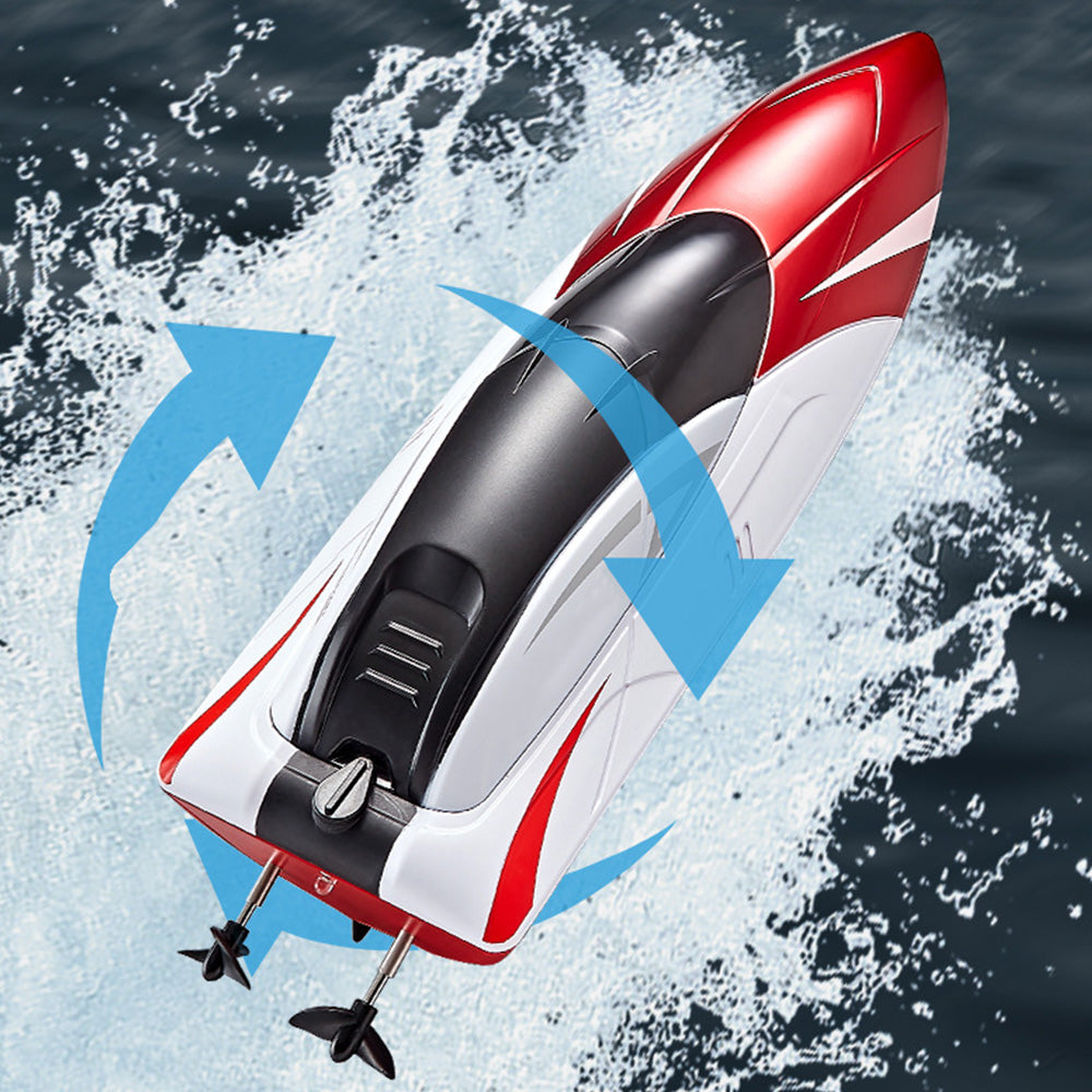 - This RC boat can race across pools or lakes at 15KMH, providing an exciting and thrilling play experience.