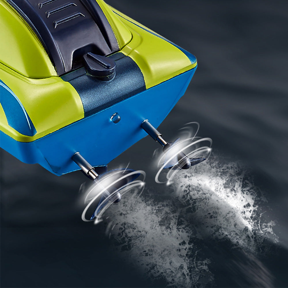 Featuring a realistic design for a truly immersive experience, this boat charges quickly and has underwater performance to dive into the excitement of high-speed water racing.