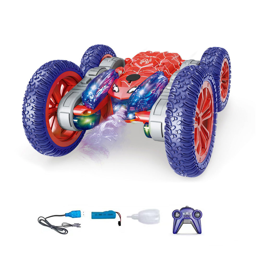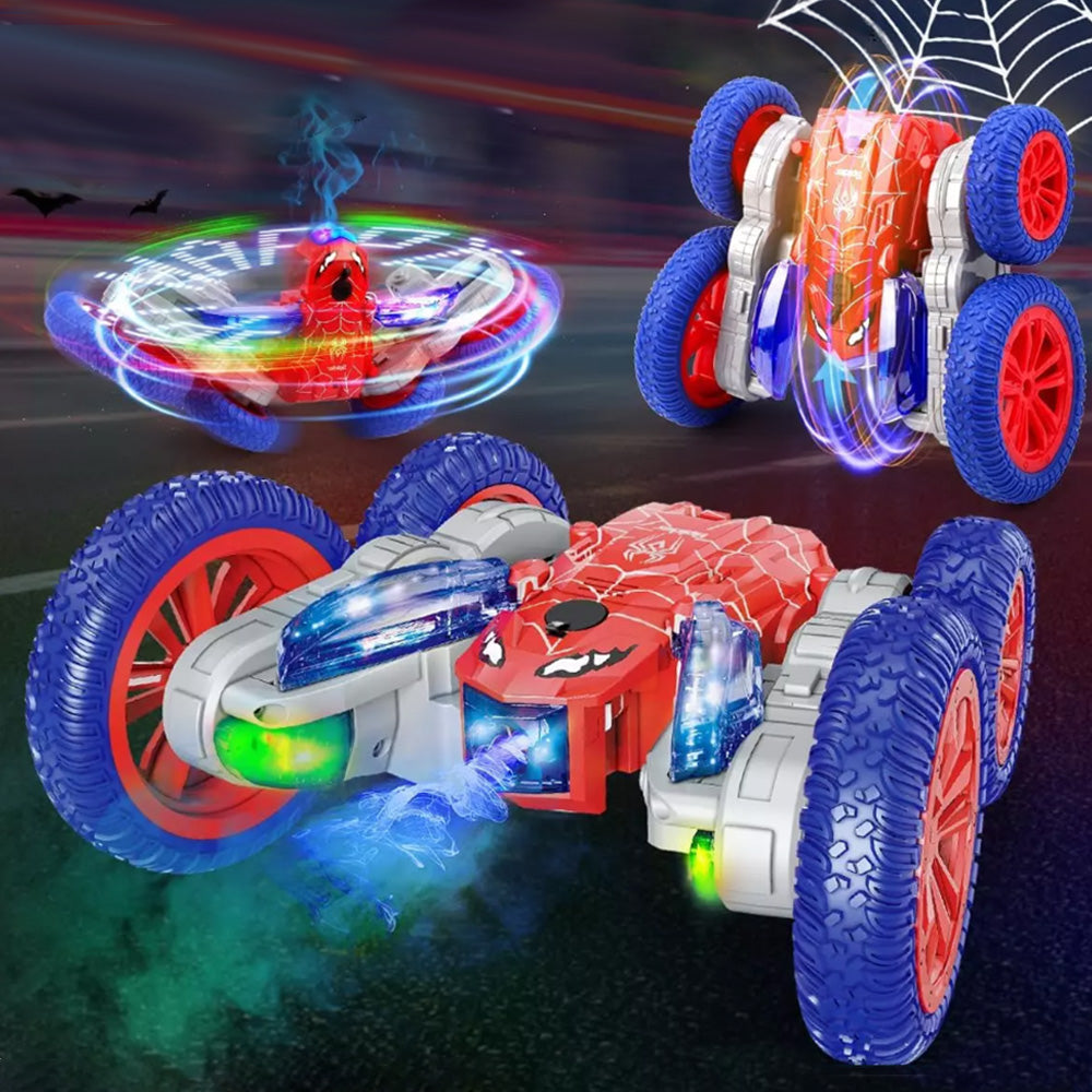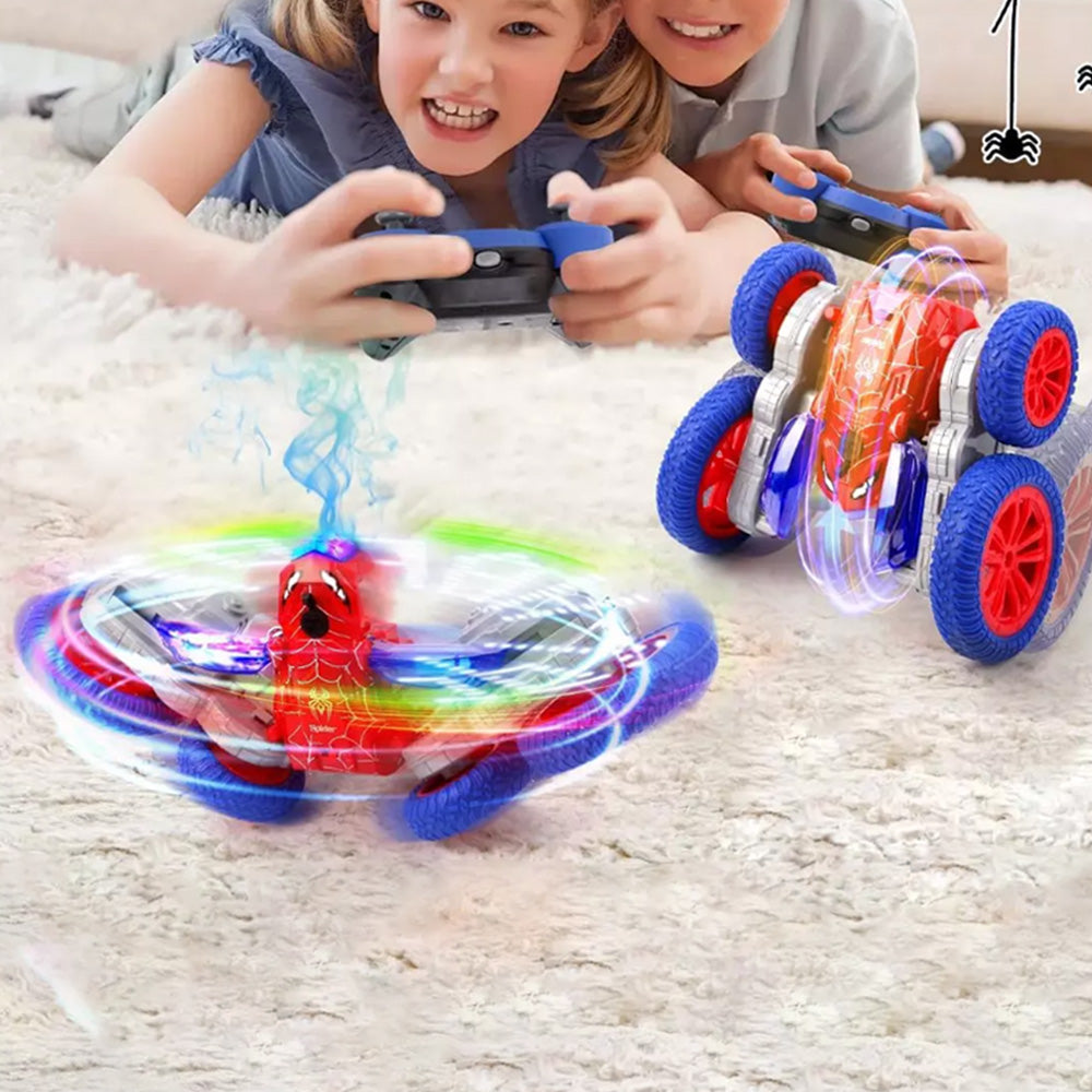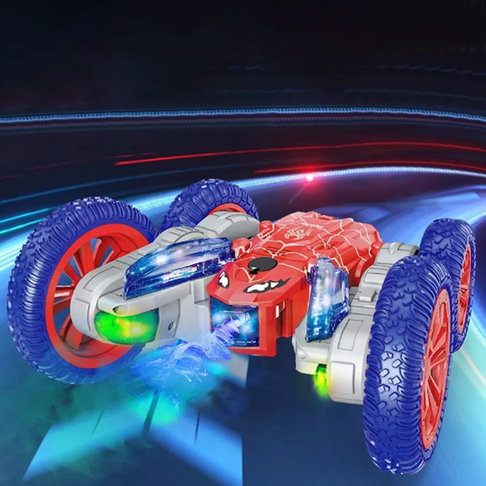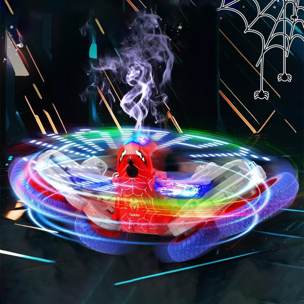 This spider remote-controlled car toys like a cyclone with 360-degree dual-side rotation, delivering nonstop drifting and flipping excitement, it also has cool LED text lights and a spray mode, racing at night has never been this dazzling or fun.