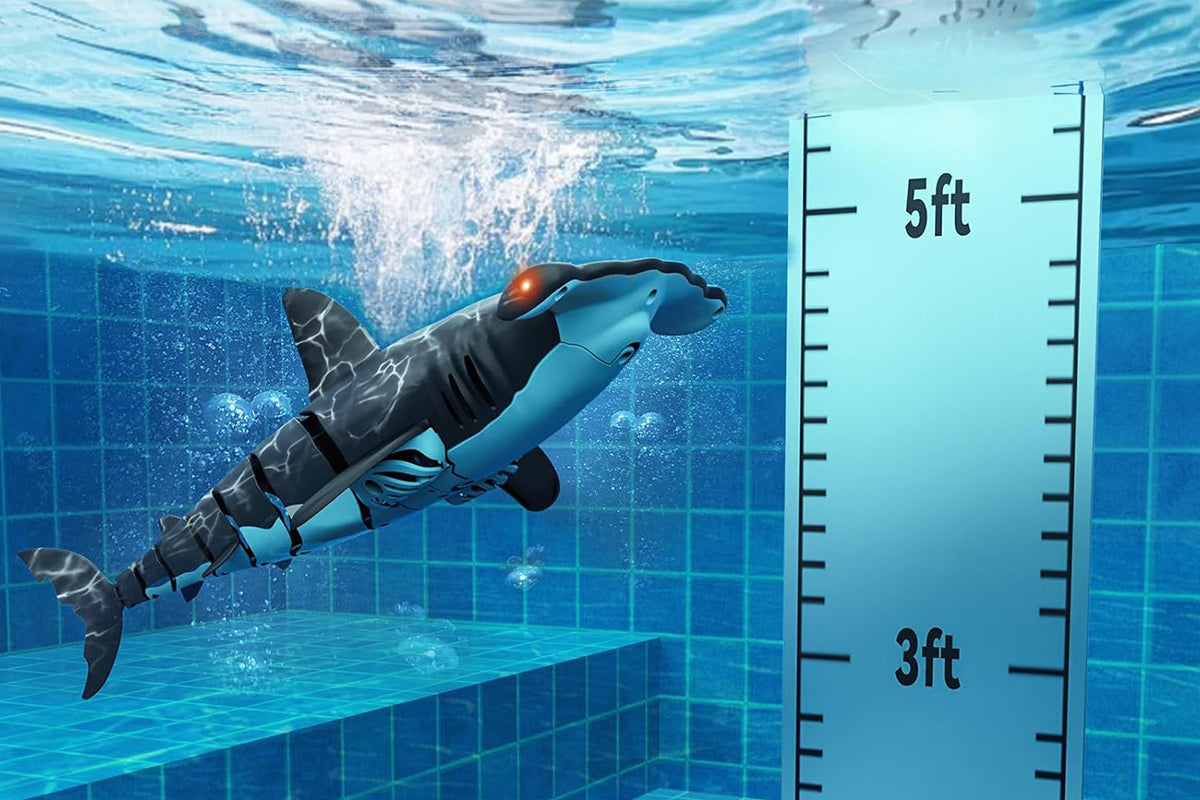 - Dive up to 1.5 meters underwater with realistic swimming motion and glowing eyes, perfect for pool or bath time fun.