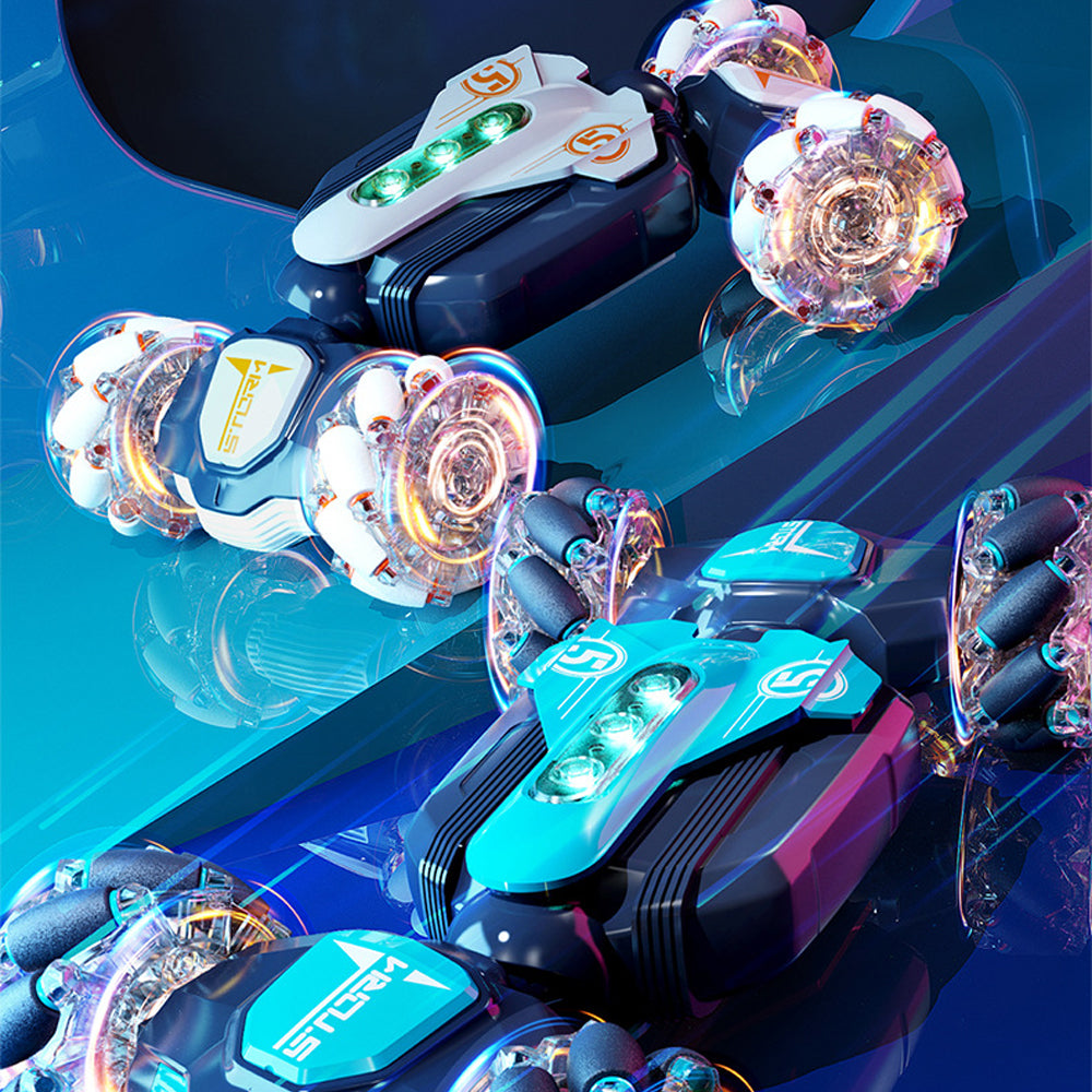 - With the controllers, the car can move forward, backward, drift, and left and right traverse, 360-degree rotation, twist, automatic performance.