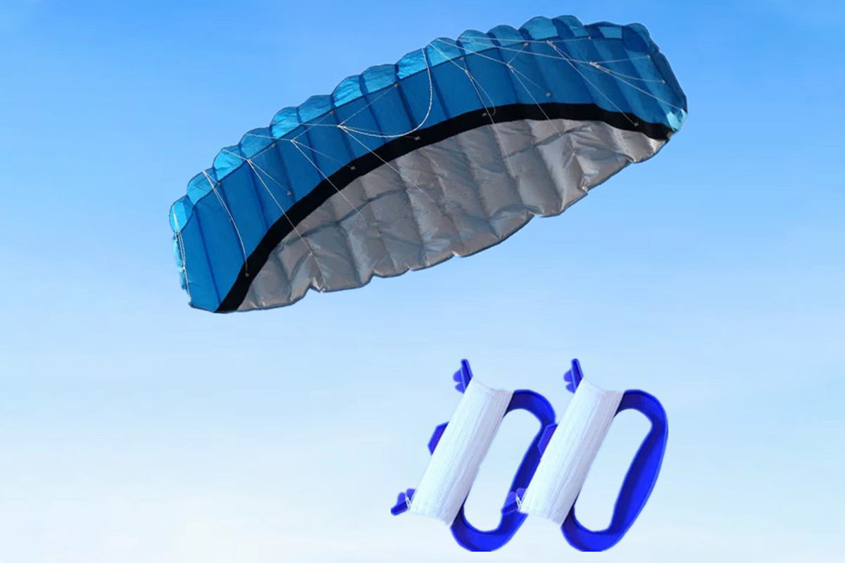 2.5m Dual Line Parafoil Parachute Stunt Sport Beach Kite Outdoor Frameless Toy-Blue