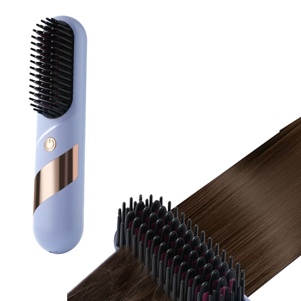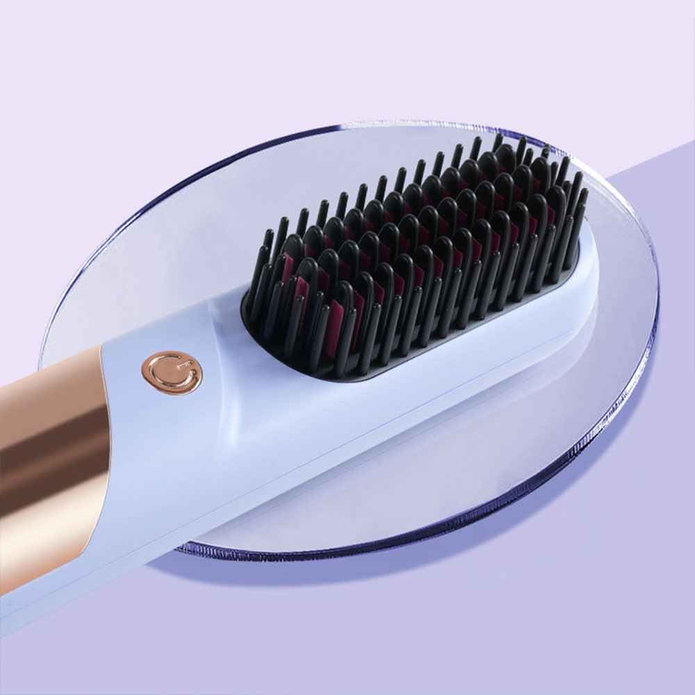 2-in-1 Cordless Hair Straightener Brush Portable Hair Comb with LED Display Hair Styling Tool Purple