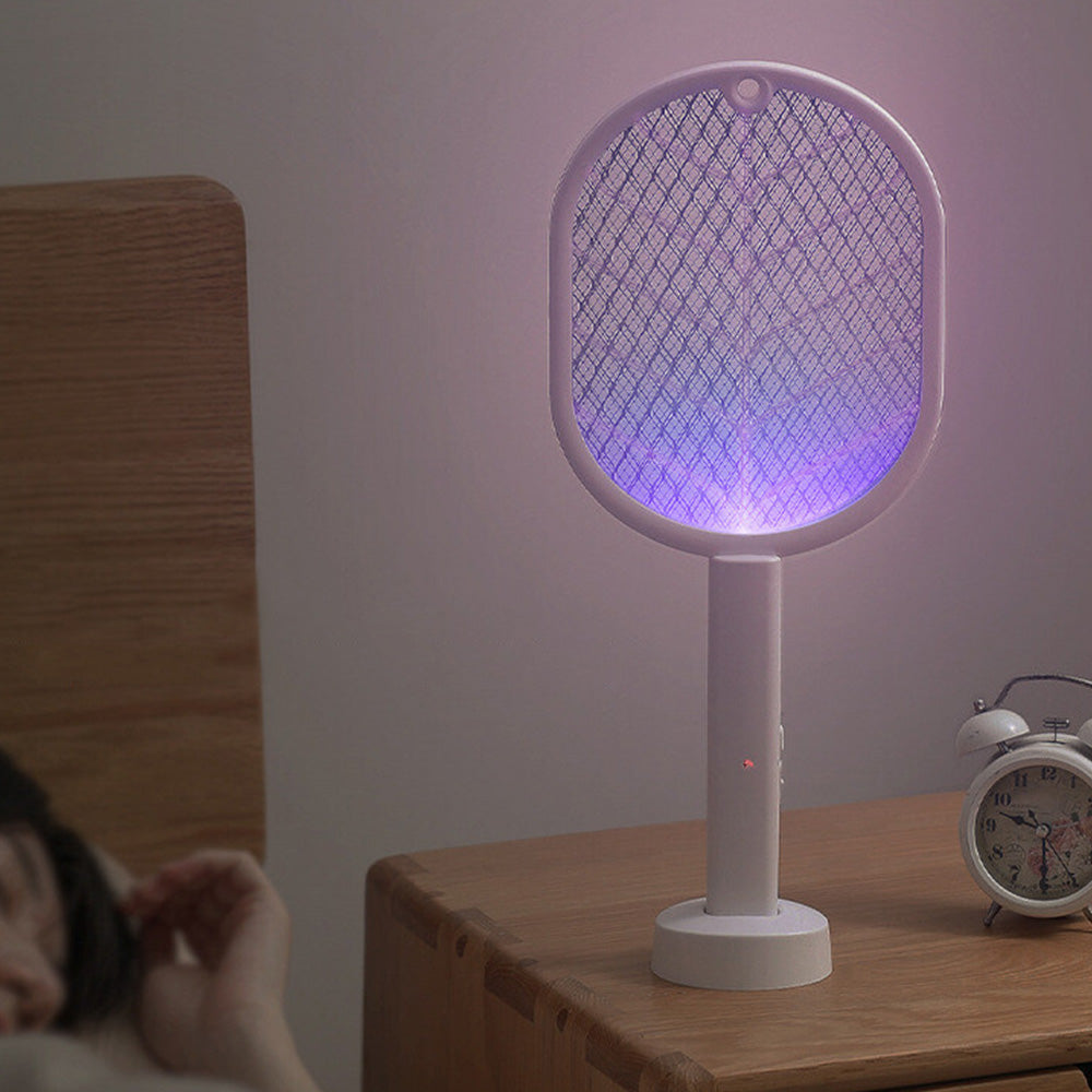 Effectively eliminate mosquitoes and flies with this 2-in-1 electric USB rechargeable swatter, suitable for handheld or tabletop use.
