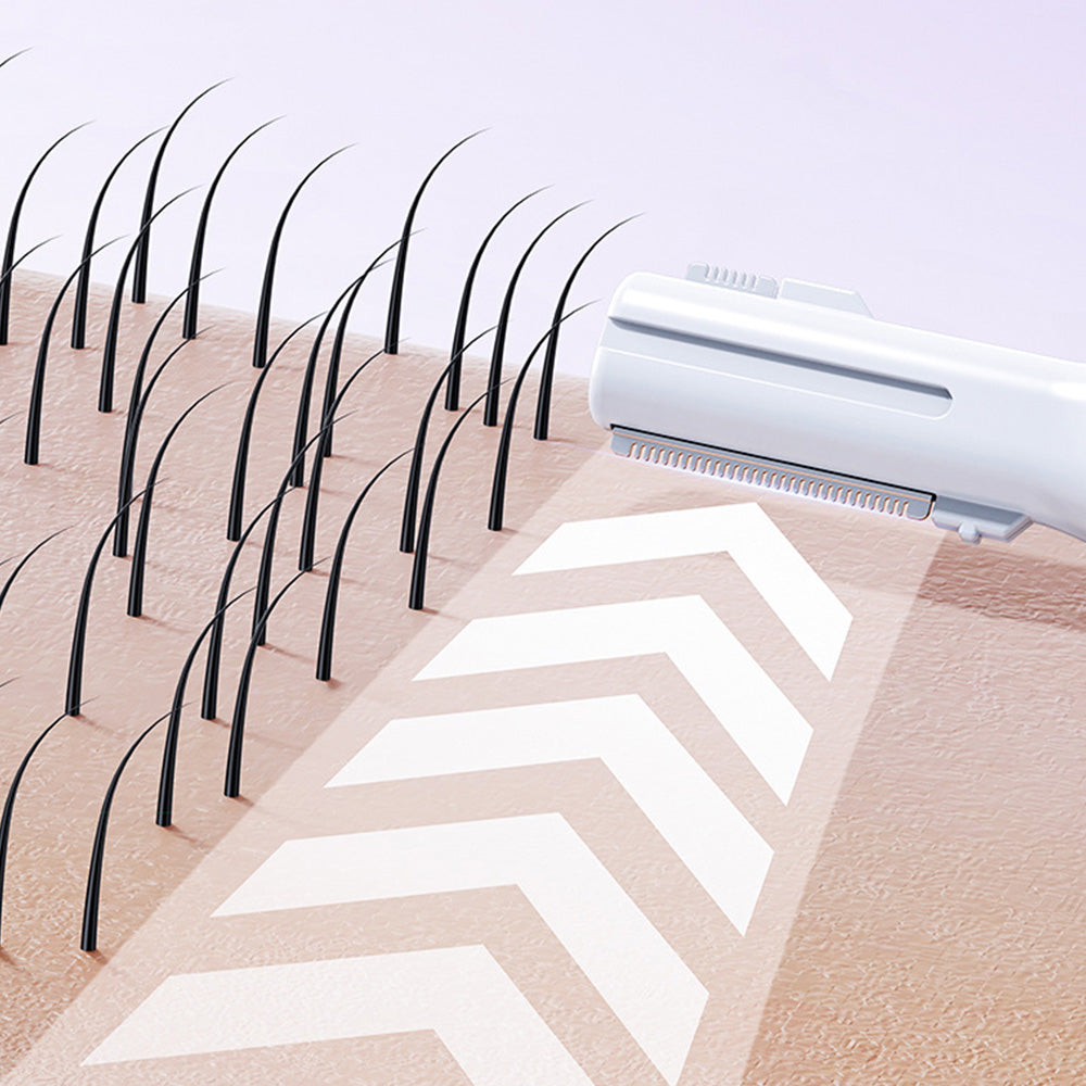 The eyebrow blade features a dual-edge stainless steel blade system, ensuring efficient cutting and creating exquisite eyebrow shapes.