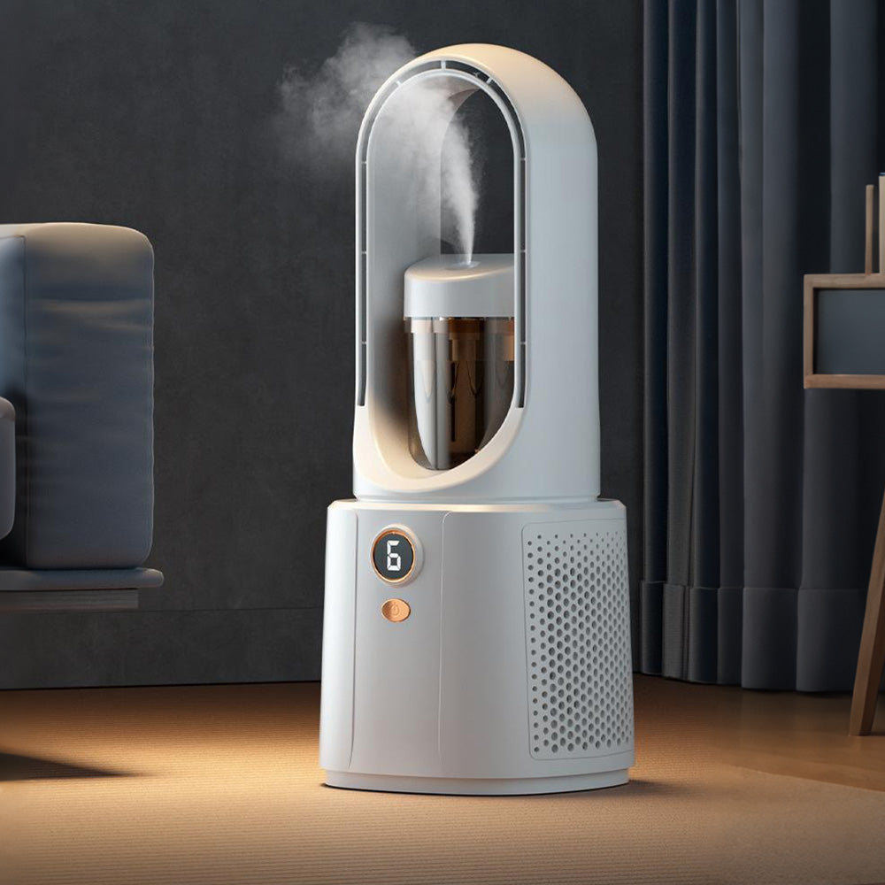 Experience dual comfort with this 2-in-1 leafless fan, combining wide-range cooling airflow and a humidifier to eliminate dry heat for a personalized comfortable space.
