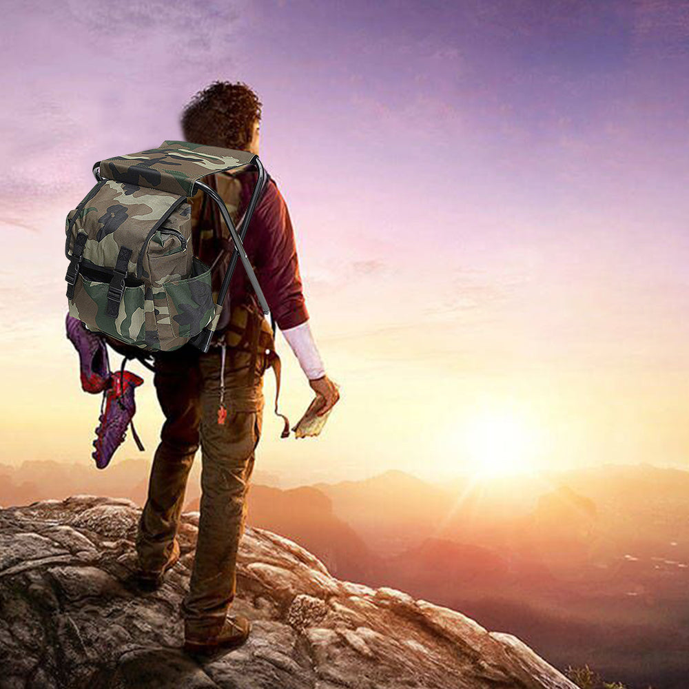 2-in-1 Outdoor Tackle Backpack Foldable Stool Seat Backpack Bag