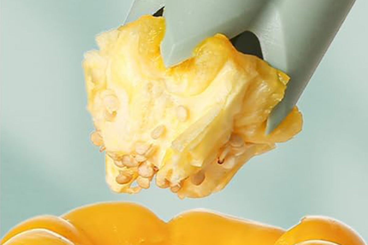 - The other end has a serrated edge with closely spaced teeth for efficient seed extraction.