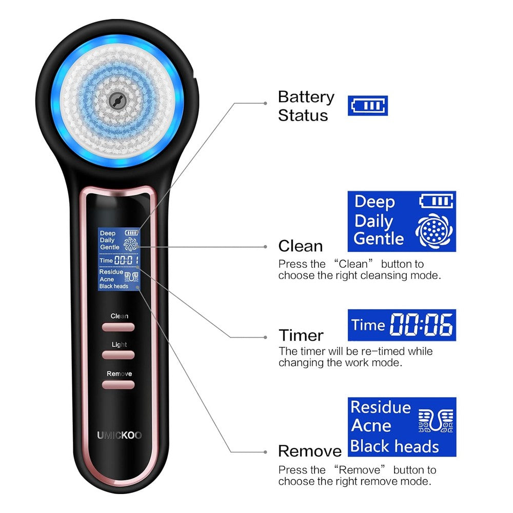 - Changing the work mode, the timer will re-time and will be displayed, for more accurate skin care.