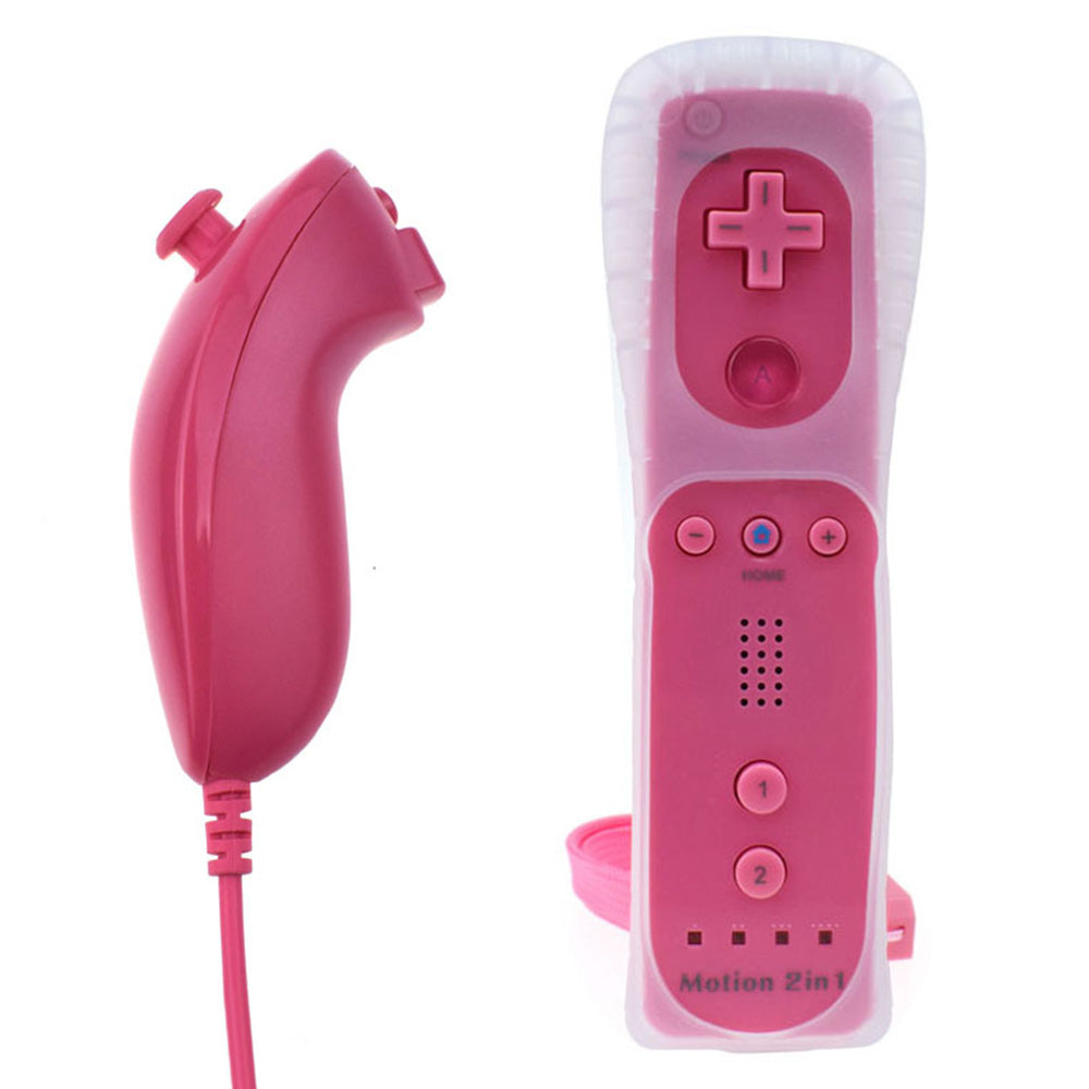 2-in-1 Remote Controller Joystick Built in Motion Plus Replacement Gamepad Compatible with Nintendo Wii/Wii U Rose Red